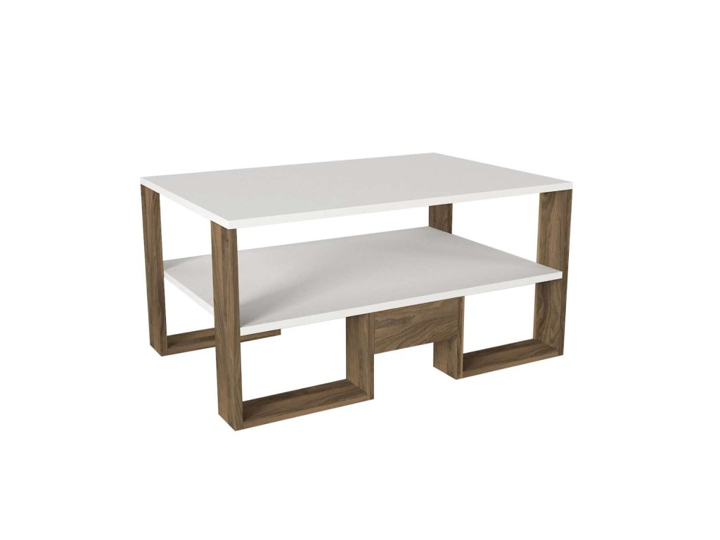 Konferenčný stolík SILVER je ideálnou voľbou pre tých, ktorí hľadajú moderný a funkčný nábytok. Jeho kombinácia bielej a orechovej farby a minimalistický dizajn prinášajú do vášho domova sviežosť a moderný štýl, zatiaľ čo poskytujú dostatok úložného priestoru pre všetky vaše potreby.