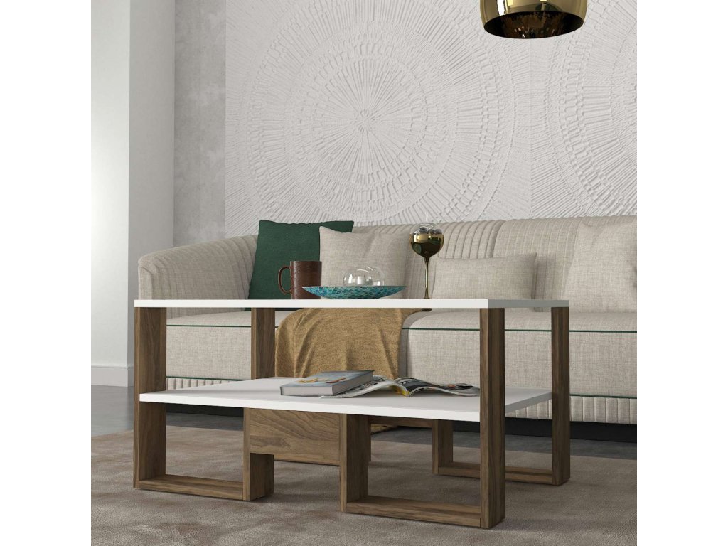 Predstavujeme SILVER, konferenčný stolík, ktorý prináša do vašej obývačky eleganciu a funkčnosť. Tento štýlový nábytok v kombinácii bielej a orechovej farby je navrhnutý tak, aby poskytoval praktické a estetické riešenie pre vaše potreby.