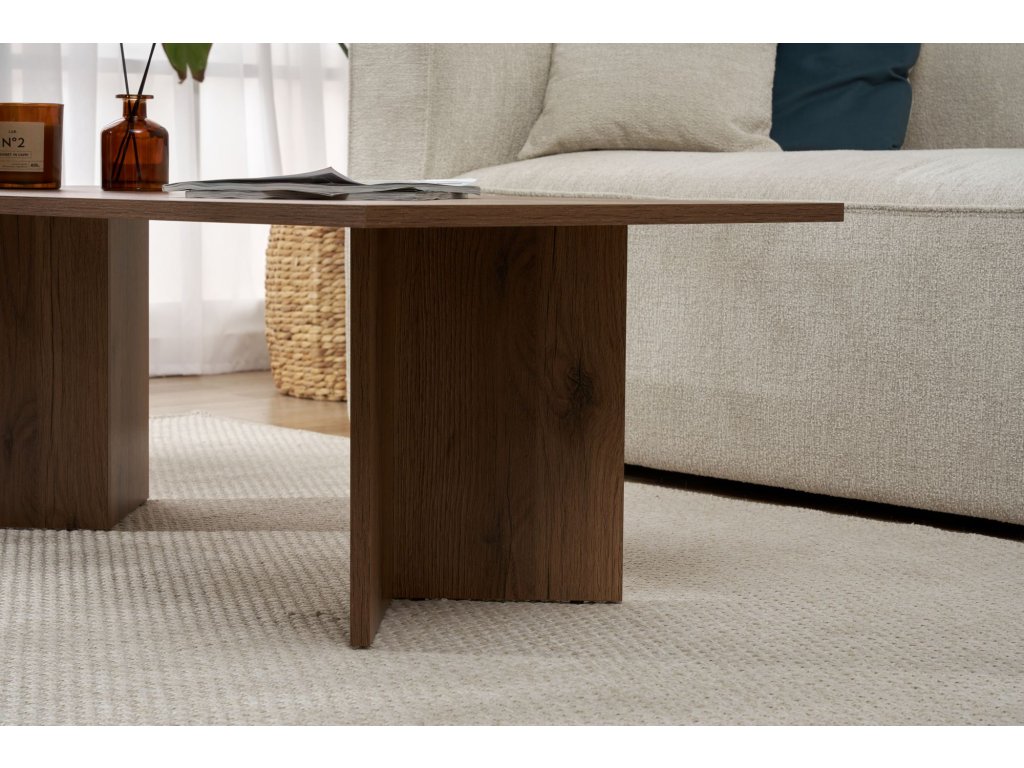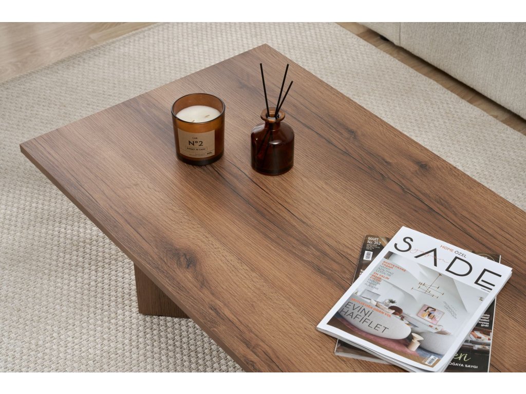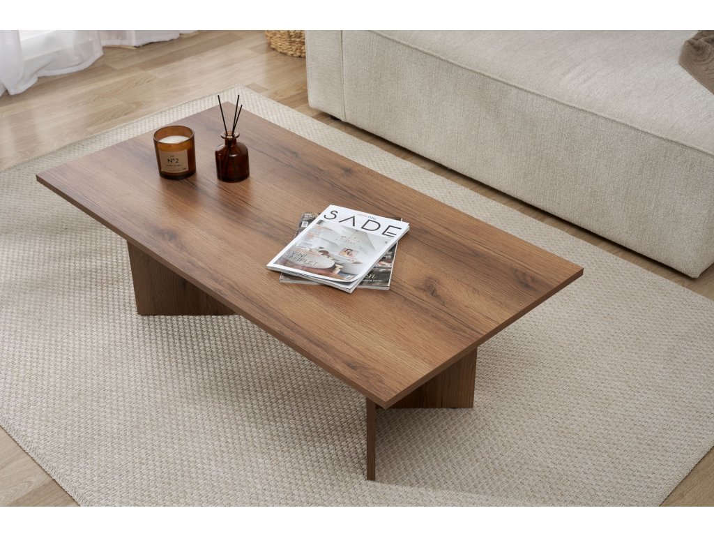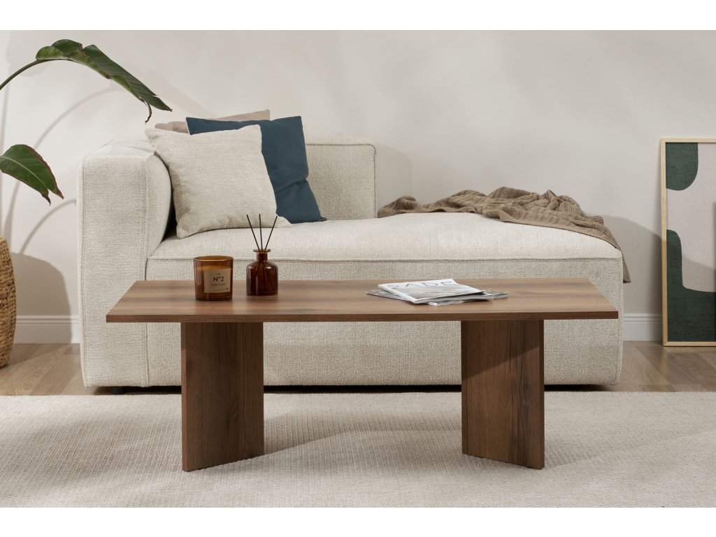 Premeňte svoju obývaciu izbu na útulné a štýlové útočisko s naším nádherným konferenčným stolíkom z orechového dreva. Tento konferenčný stolík je vyrobený zo 100% drevotriesky s melamínovým poťahom a vyžaruje eleganciu a sofistikovanosť. Jeho elegantný dizajn a teplá orechová farba okamžite pozdvihnú atmosféru vášho priestoru a vytvoria príjemnú atmosféru pre vás aj vašich hostí. Jeho moderný dizajn a sýta orechová farba bez námahy doplní akýkoľvek štýl interiéru a stane sa tak perfektným doplnkom vašej obývačky.