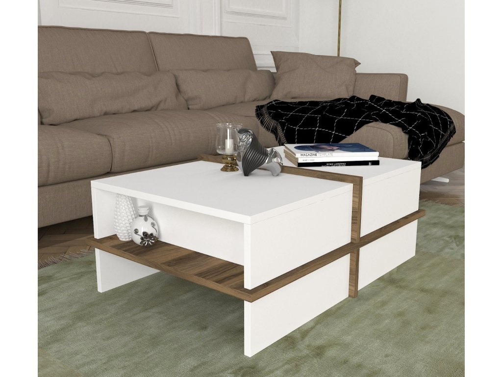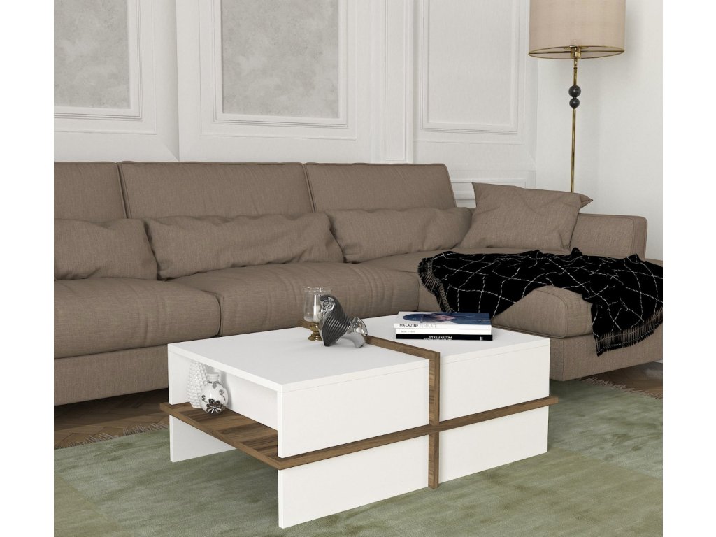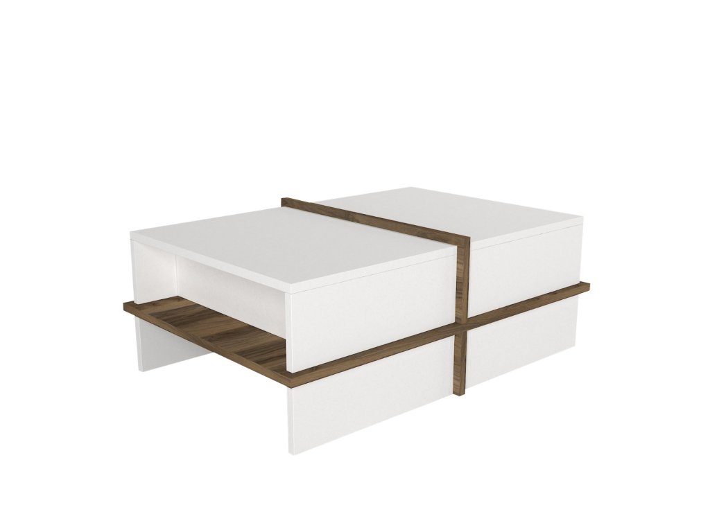 Konferenčný stolík PLEACE, biela / orech