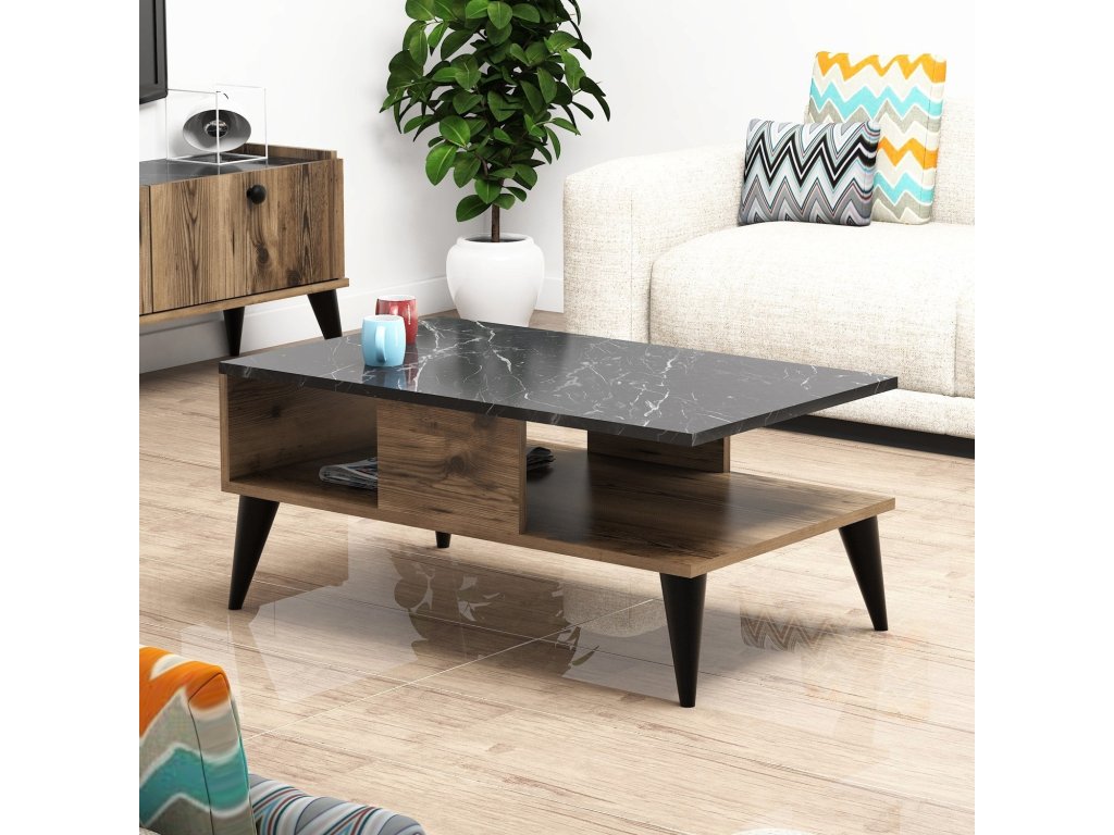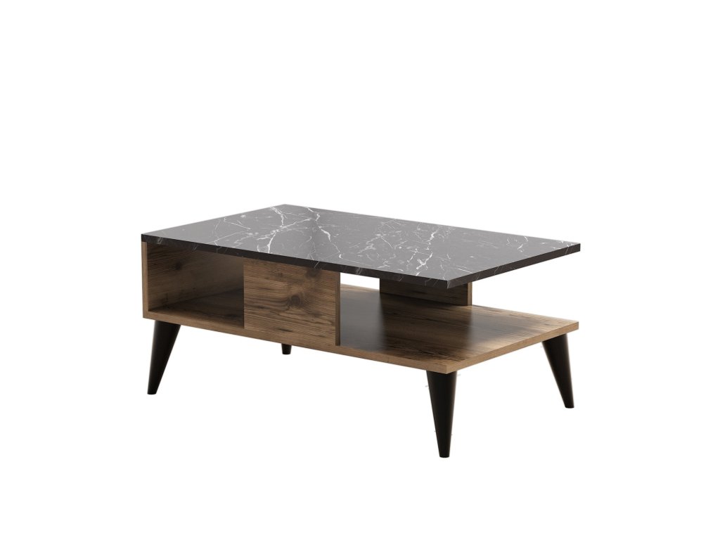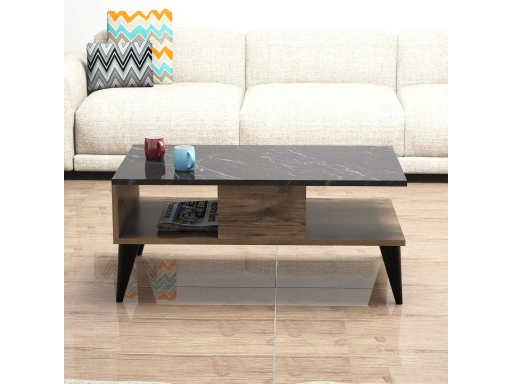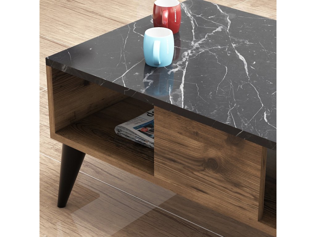 Konferenčný stolík s policou UMI, orech / čierny mramor