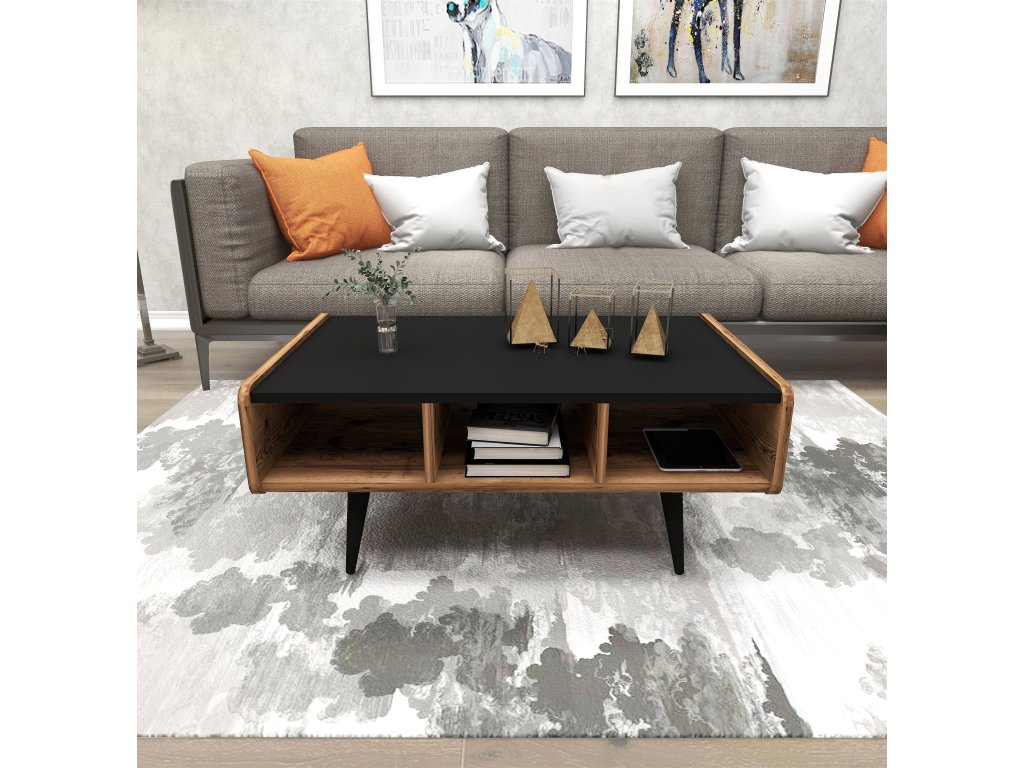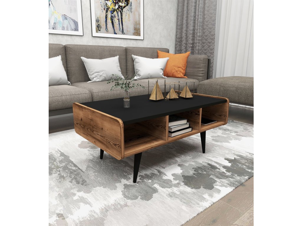 Konferenčný stolík TEXAS je ideálnym riešením pre moderné aj klasické obývacie izby. Vďaka kombinácii svetlého orecha a čiernej farby prináša štýlový vzhľad, zatiaľ čo praktický regál poskytuje dostatok priestoru na uloženie kníh, časopisov alebo iných drobností. Jeho odolná konštrukcia a plastové nožičky zaisťujú jednoduchú údržbu a dlhú životnosť.