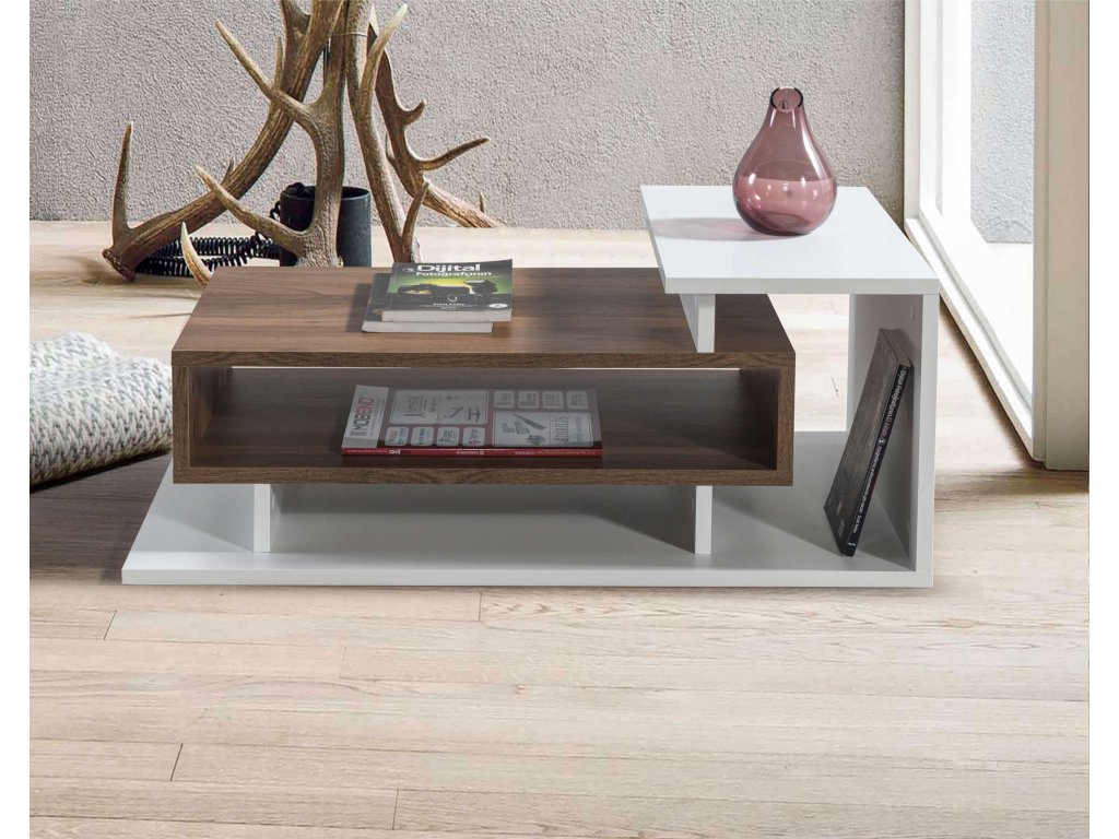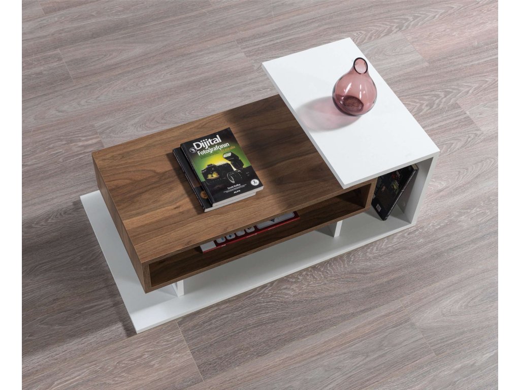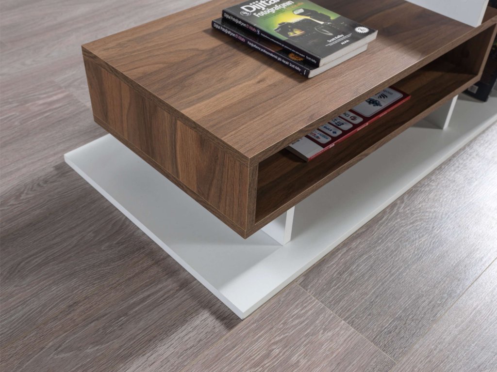 Konferenčný stolík SUMMER je ideálnou voľbou pre tých, ktorí hľadajú moderný a funkčný nábytok. Jeho kombinácia bielej a orechovej farby a minimalistický dizajn prinášajú do vášho domova sviežosť a moderný štýl, zatiaľ čo poskytujú dostatok úložného priestoru pre všetky vaše potreby.