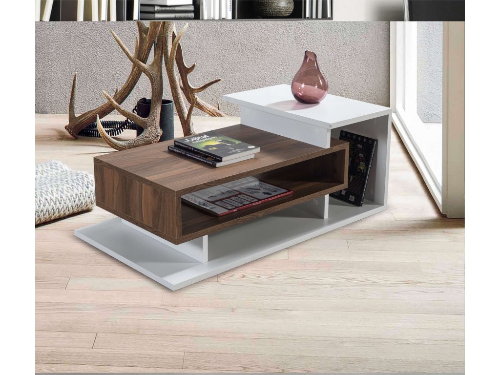 Predstavujeme SUMMER, konferenčný stolík, ktorý prináša do vašej obývačky eleganciu a moderný dizajn. Tento štýlový nábytok v kombinácii bielej a orechovej farby je navrhnutý tak, aby poskytoval praktické a estetické riešenie pre vaše potreby.