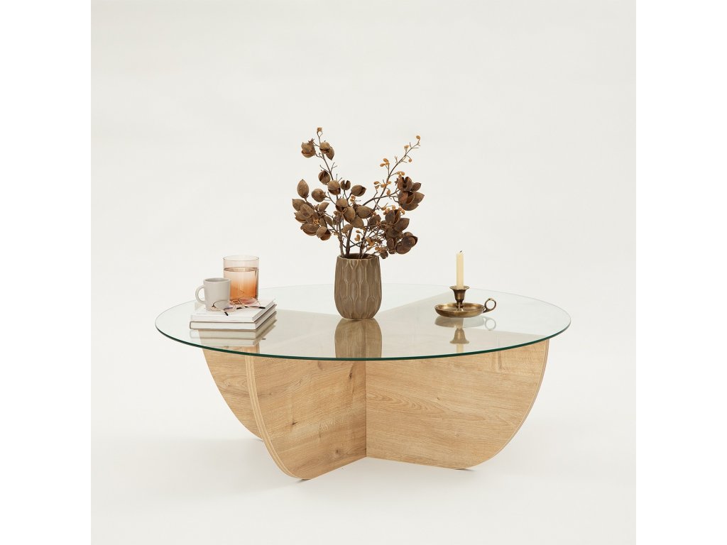 Konferenčný stolík TENANT vyniká svojim okrúhlym dizajnom a sofistikovaným dubovým dekorom Sapphire. Tento štýlový kúsok je ideálnou voľbou pre vašu obývaciu izbu, kde prepája eleganciu a funkčnosť.