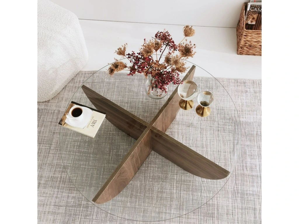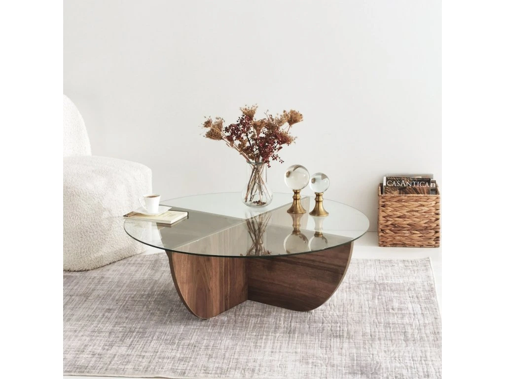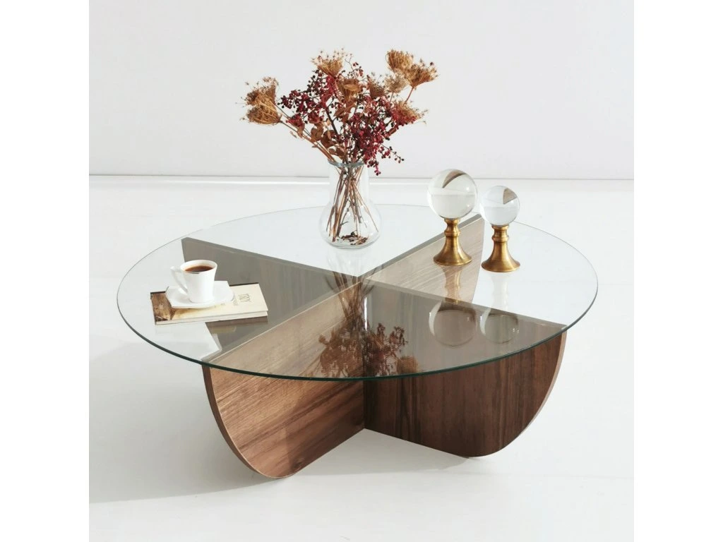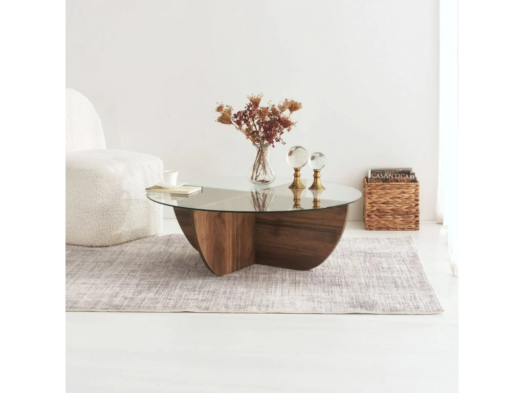 Konferenčný stolík TENANT je štýlovým a praktickým doplnkom pre vašu obývaciu izbu. Vďaka okrúhlemu tvaru a orechovému dekoru prináša do interiéru teplo, eleganciu a moderný vzhľad.