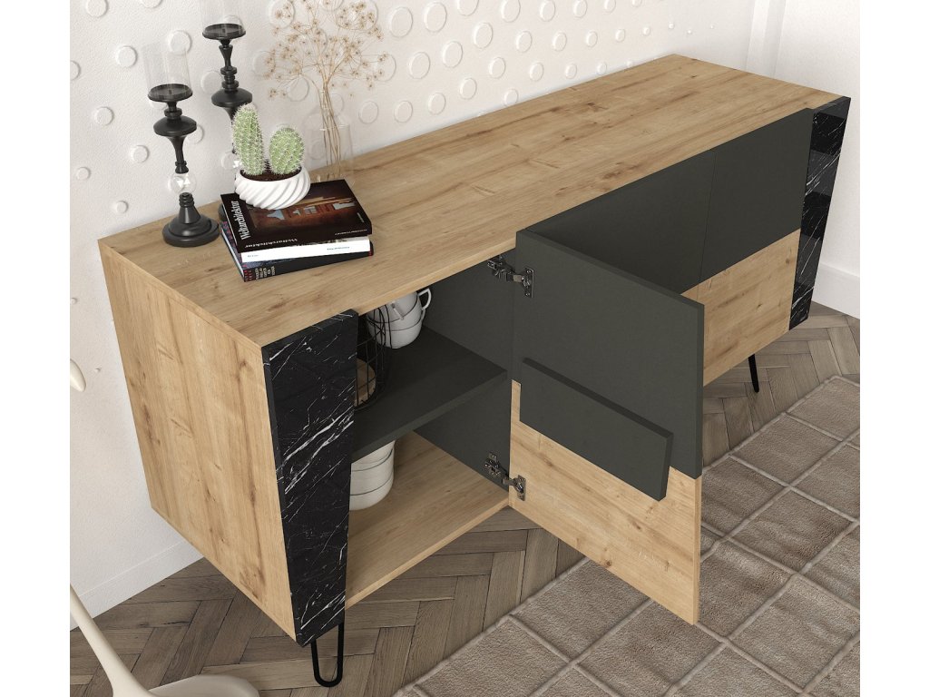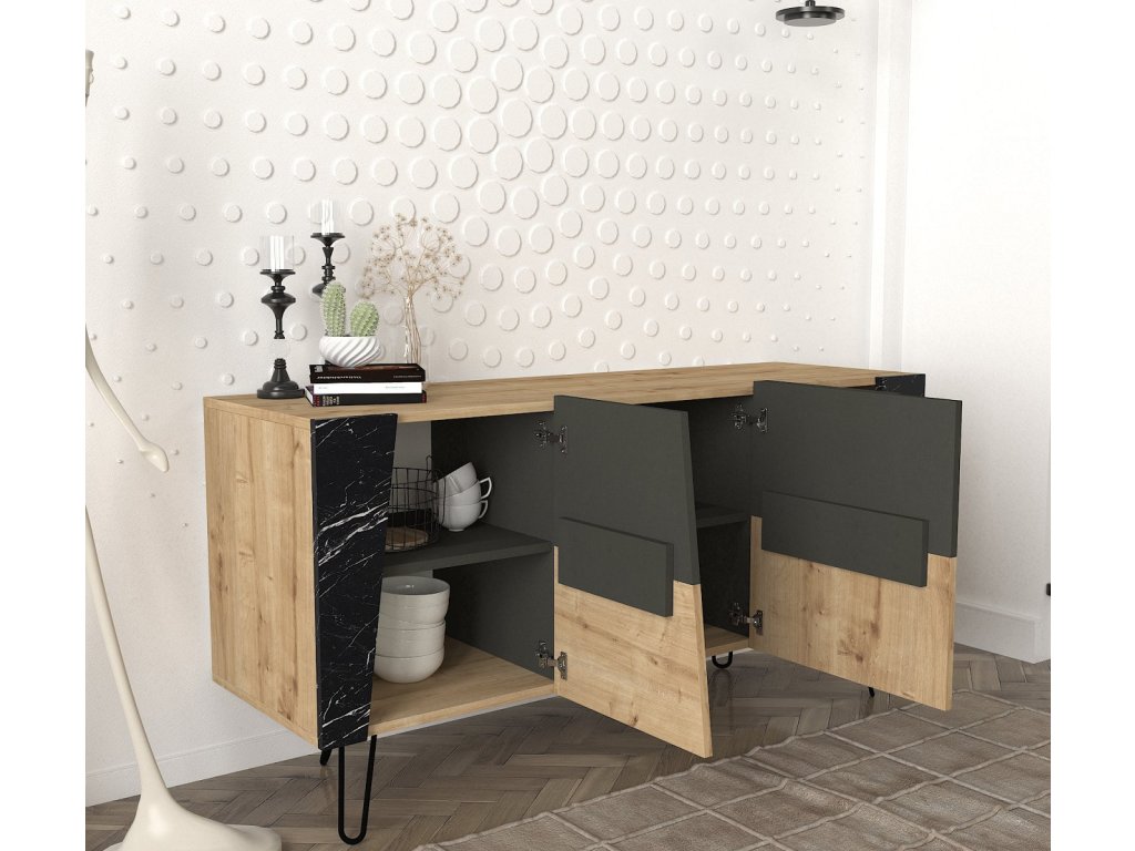Je vyrobená z kvalitných LTD dosiek, ktoré sú nenáročné na údržbu. Ich hrúbka: 18 mm. Nábytok je ohraničený kvalitnou PVC hranou.