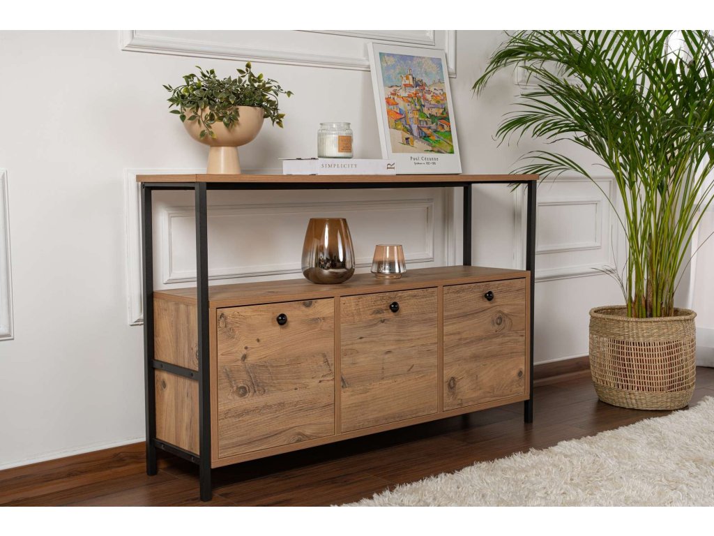 Konzola so skrinkou PALACE, borovica Atlantik / čierna
