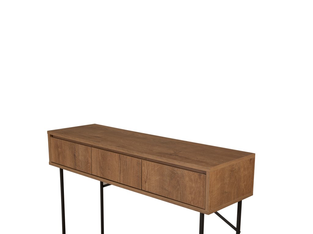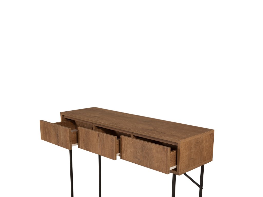 Konzolový stolík BANDANA prináša do vášho interiéru jedinečný industriálny štýl a praktické využitie. Vďaka kombinácii dekoru orecha a čiernych kovových prvkov je ideálnym riešením pre predsieň aj obývaciu izbu.