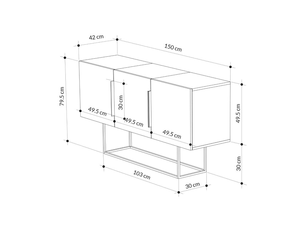 - Vybavenie: Tri plné dvierka ponúkajú dostatok úložného priestoru, udržujú vaše veci organizované a mimo dohľadu.