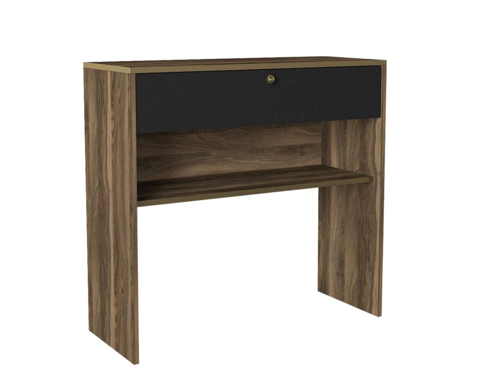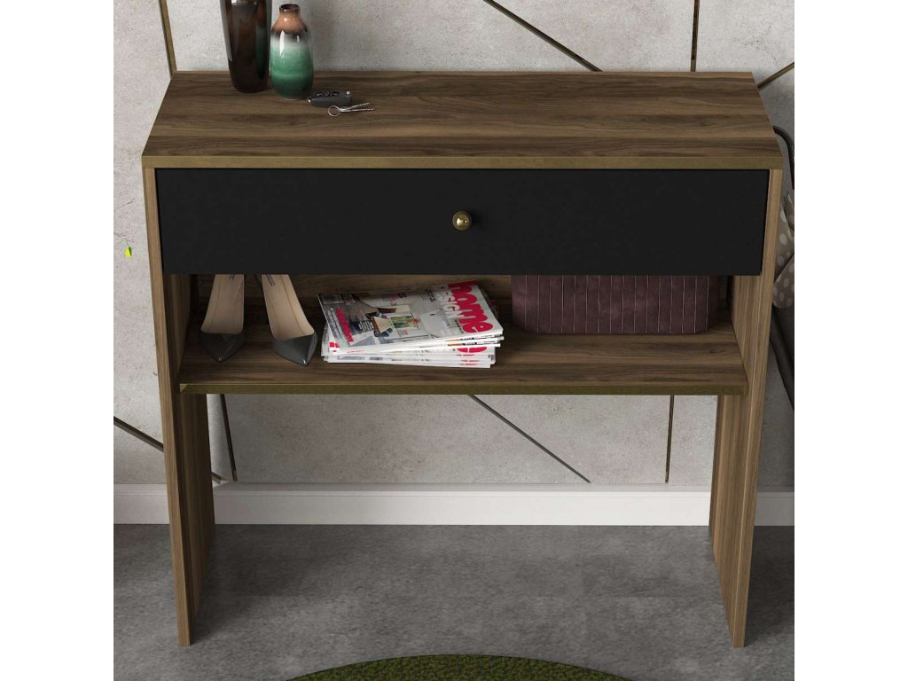 Elegantný a praktický konzolový stolík LOUISE je ideálnym doplnkom pre vašu obývaciu izbu alebo predsieň. Tento štýlový nábytok je vyrobený z kvalitného materiálu LTD a vyniká svojim moderným dizajnom v kombinácii orechovej a čiernej farby.