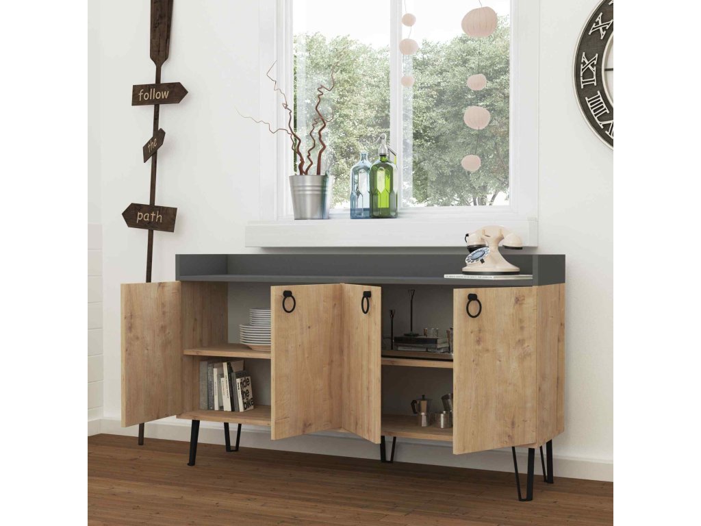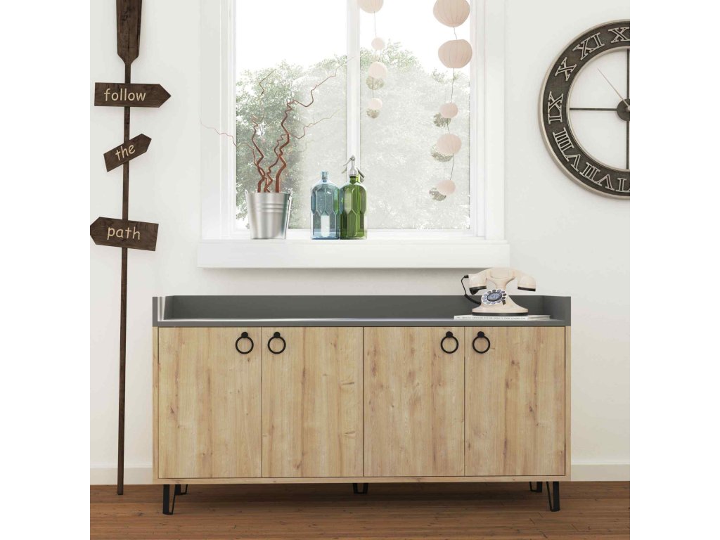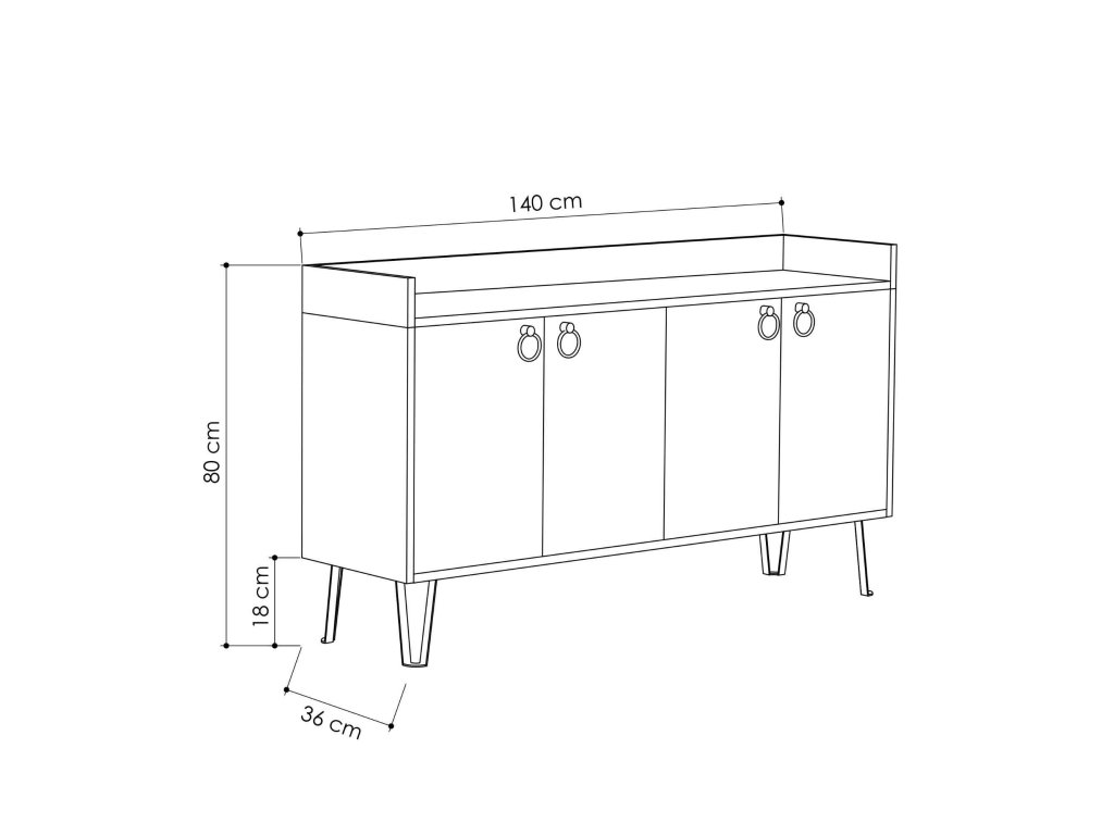 - Vybavenie: Štyri plné dvierka skrinky poskytujú dostatok miesta na uskladnenie všetkého, čo potrebujete mať po ruke.