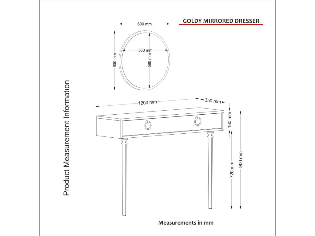 - Zostava obsahuje: Konzolový stolík (š120 x h35 x v90 cm), nástenné zrkadlo (š60 x h2 x v60 cm)