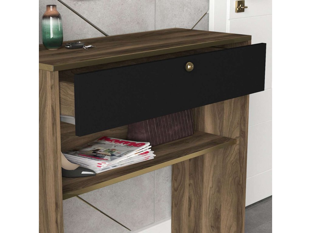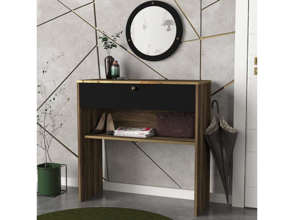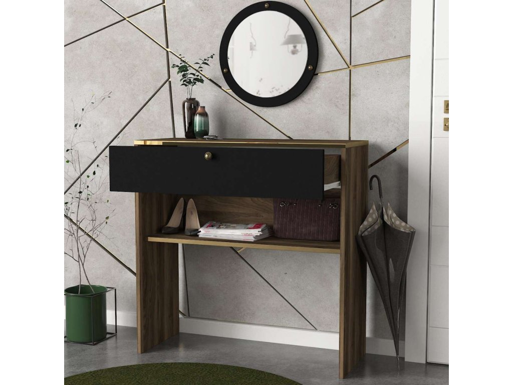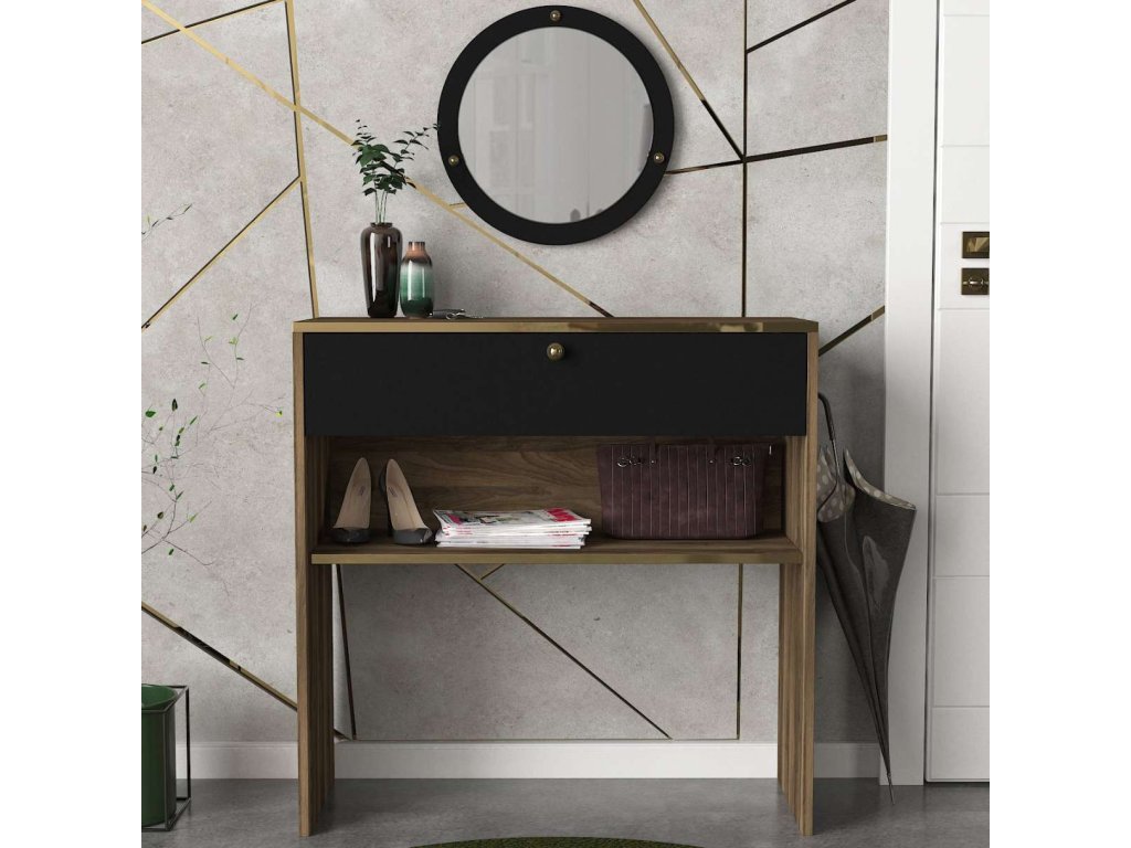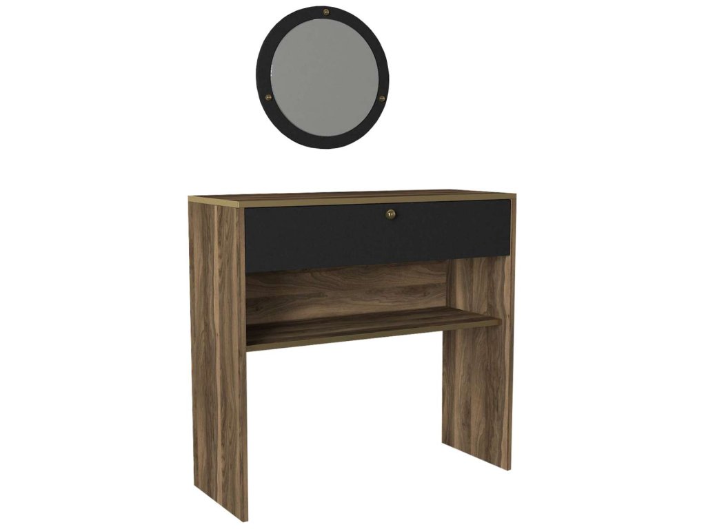 Konzolový stolík s nástenným zrkadlom LOUISE M, orech/čierna