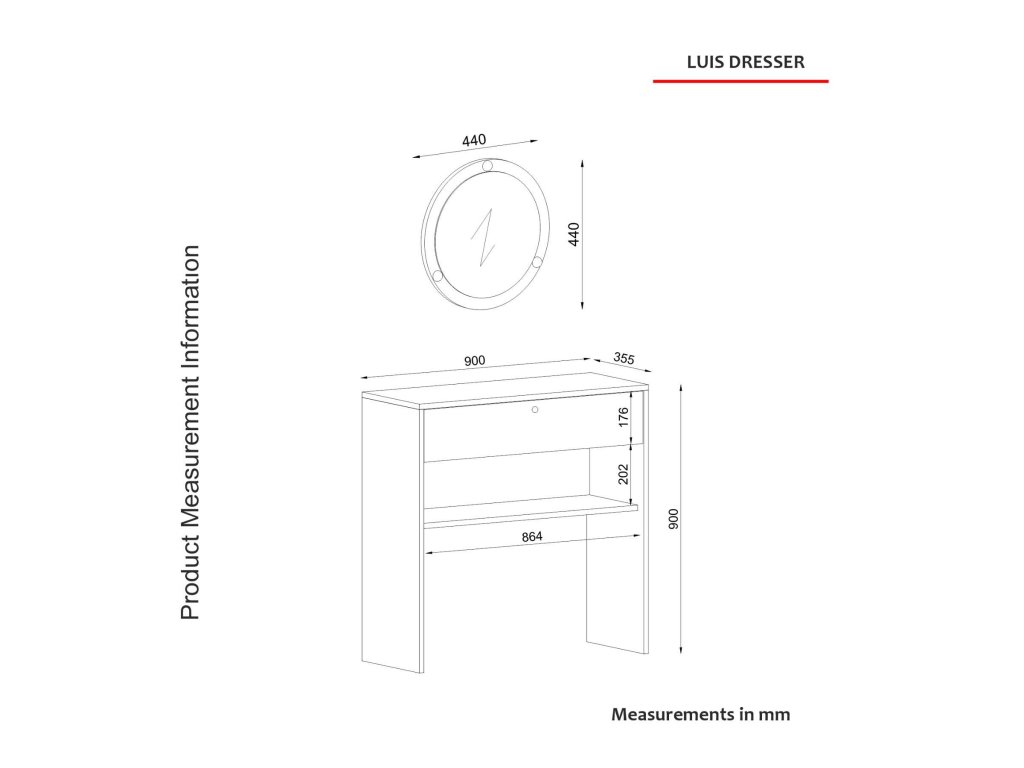 - Zostava obsahuje: Konzolový stolík (š90 x h35.5 x v90 cm), nástenné zrkadlo (š44 x h2 x v44 cm)
