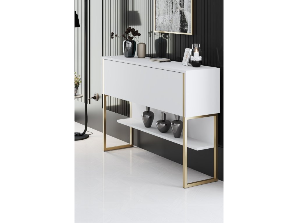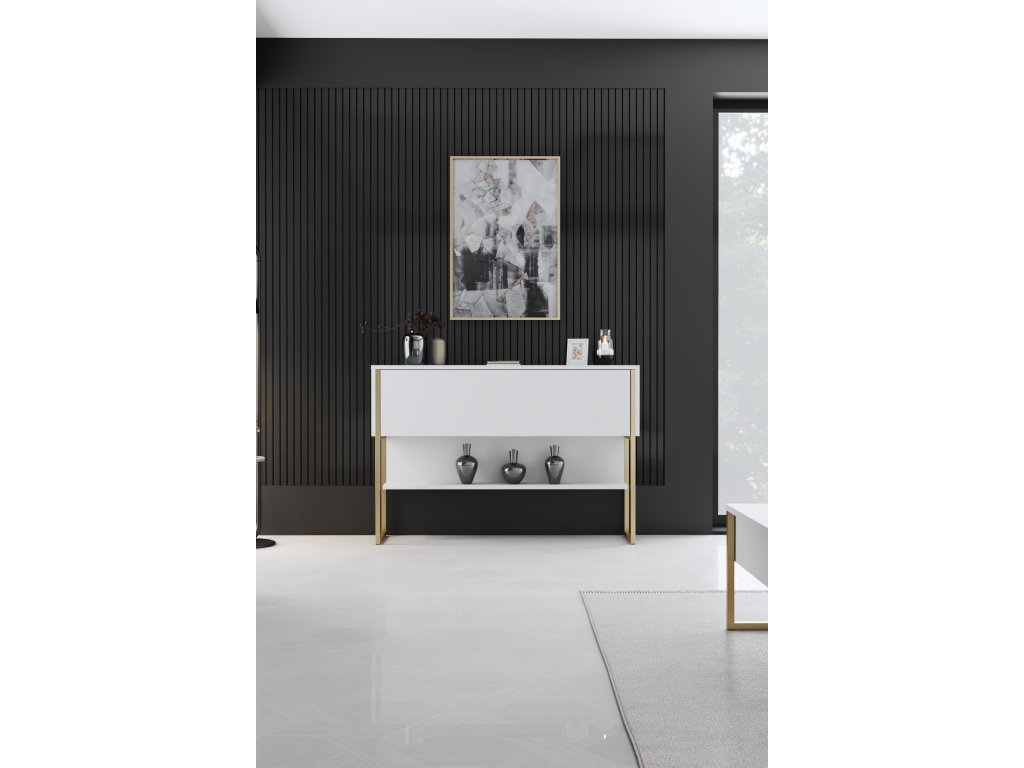 Konzolový stolík so krínkou GOLD, zlatá / biela