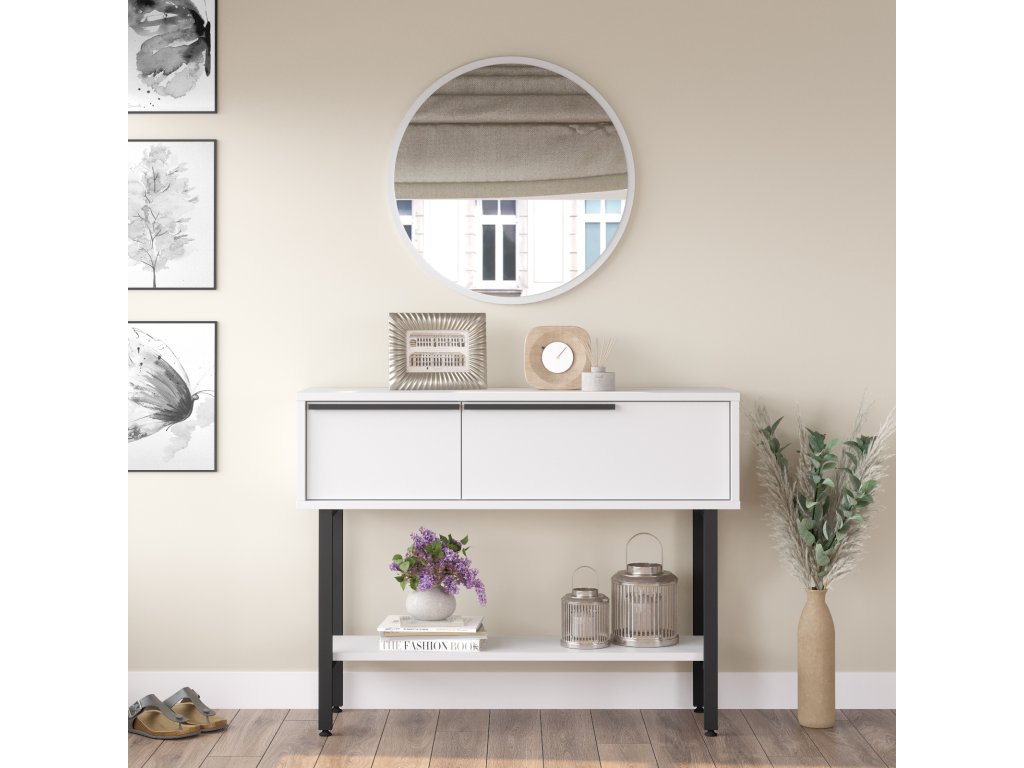 Konzolový stolík so zrkadlom LONNY 12, biela