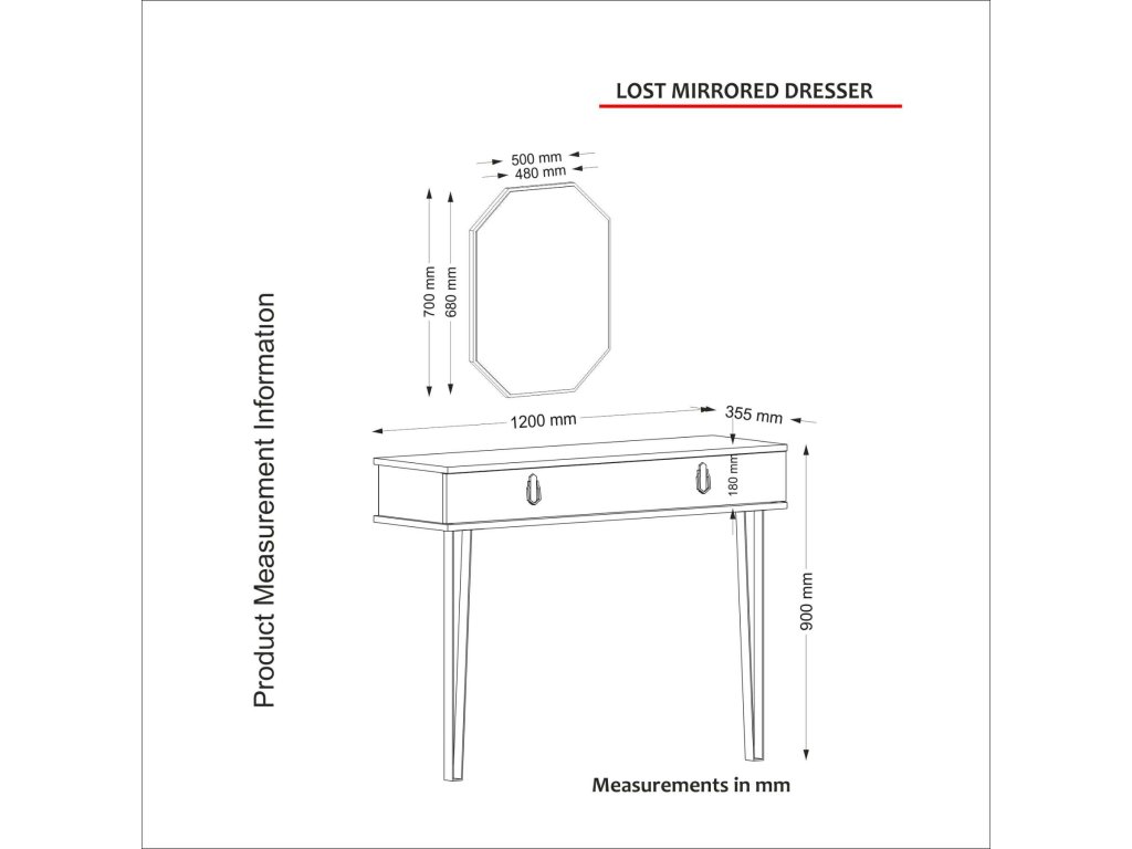 - Zostava obsahuje: Konzolový stolík (š120 x h35 x v90 cm), nástenné zrkadlo (š50 x h2 x v70 cm)