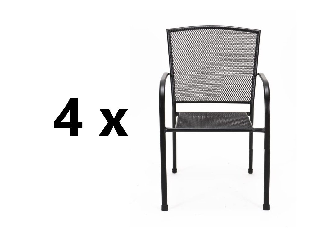 Kovová záhradná stolička 4 ks RIVER, čierna