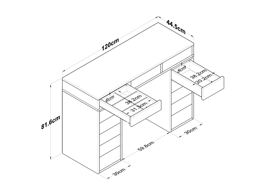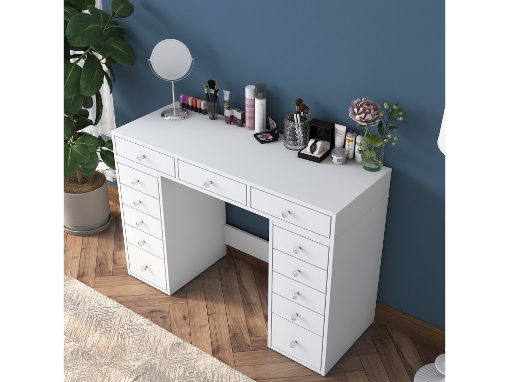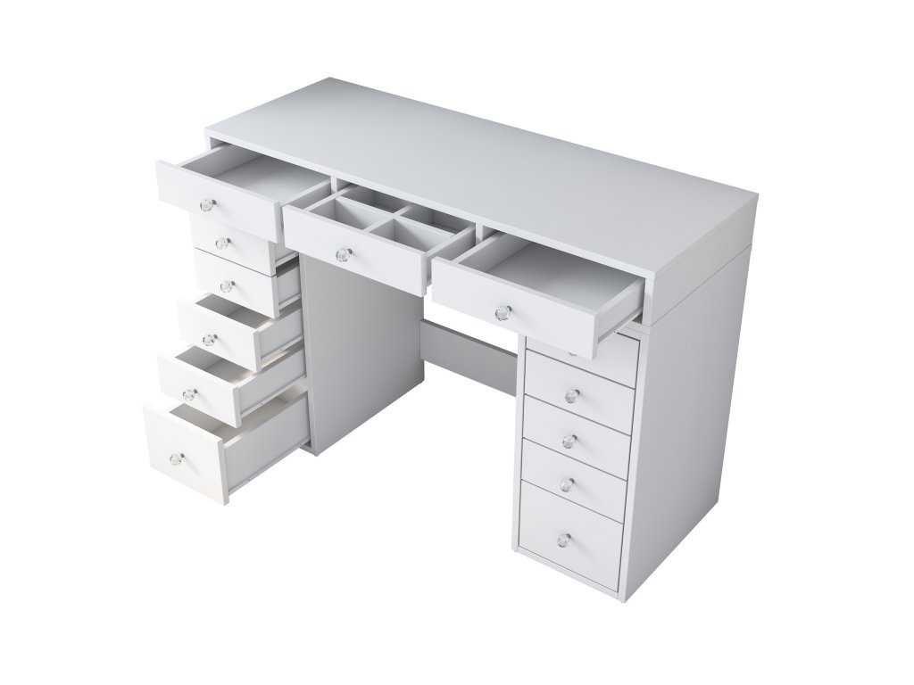 - Vybavenie: 13 zásuviek pre perfektnú organizáciu kozmetiky, šperkov a ďalších nevyhnutností.