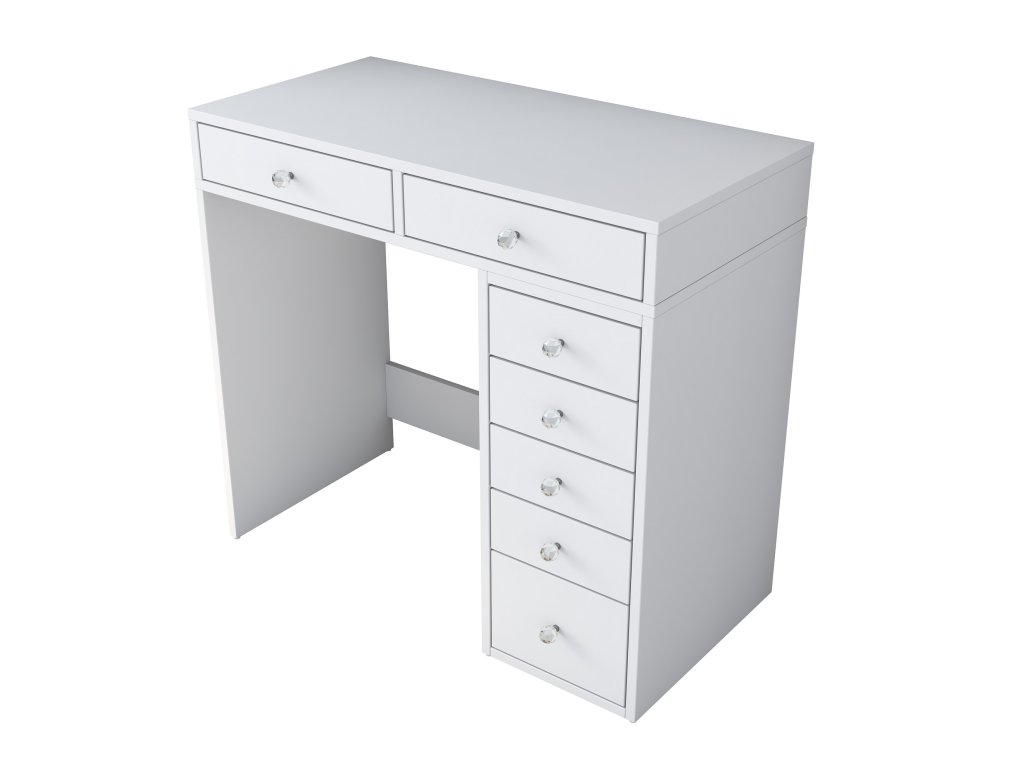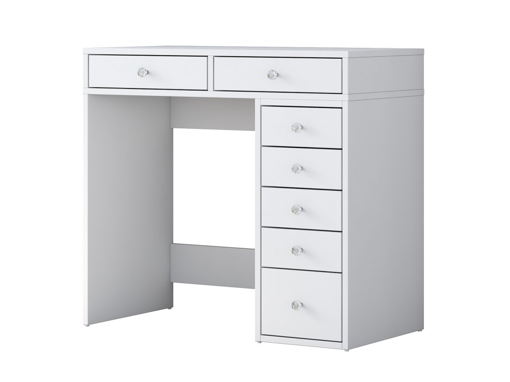 Toaletný stolík DOCTOR prináša do vašej spálne kombináciu elegancie a funkčnosti. Jeho čistý biely dizajn v škandinávskom štýle dodáva priestoru sviežosť a moderný vzhľad. Vďaka siedmim praktickým zásuvkám poskytuje dostatok úložného priestoru pre všetky vaše nevyhnutnosti.