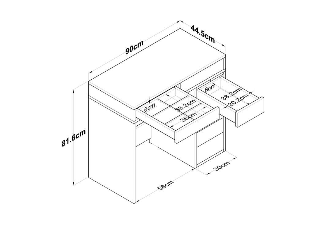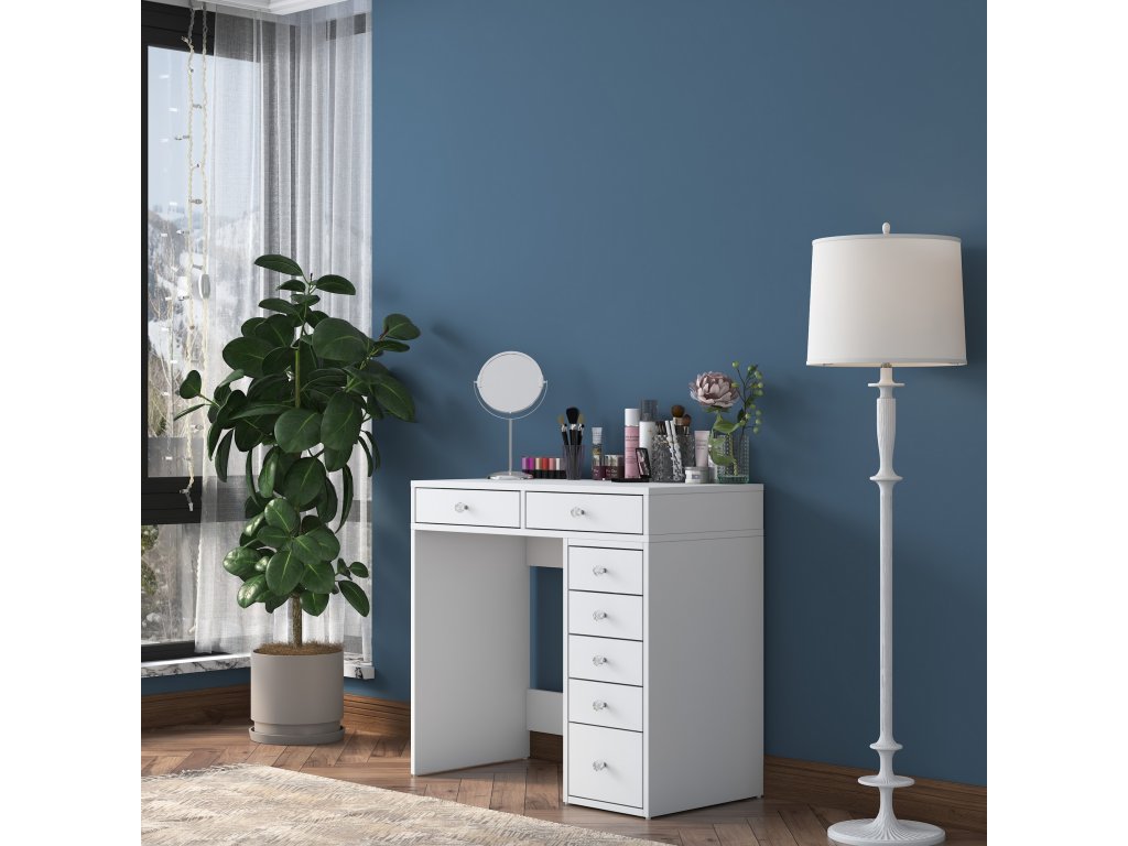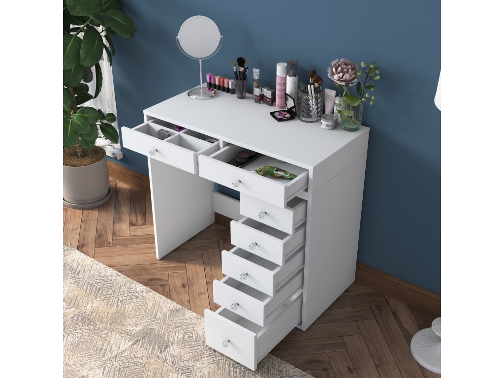 - 7 priestranných zásuviek na uloženie kozmetiky, šperkov alebo iných predmetov.