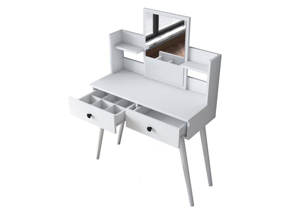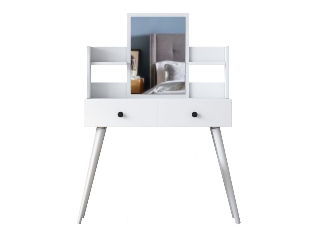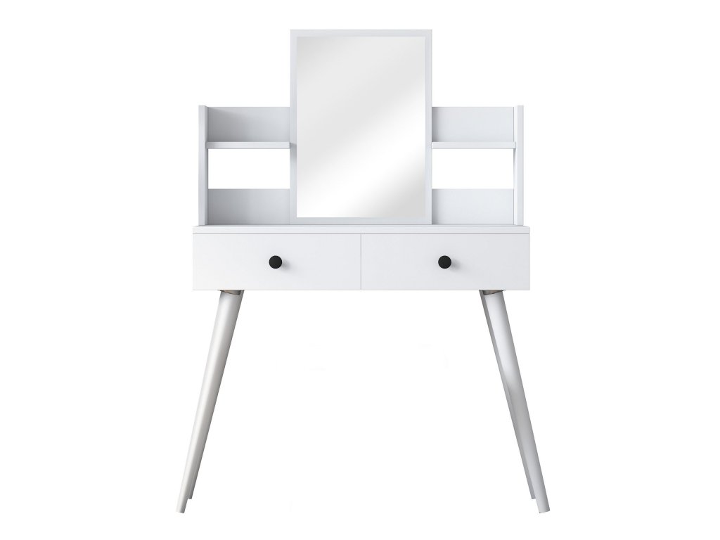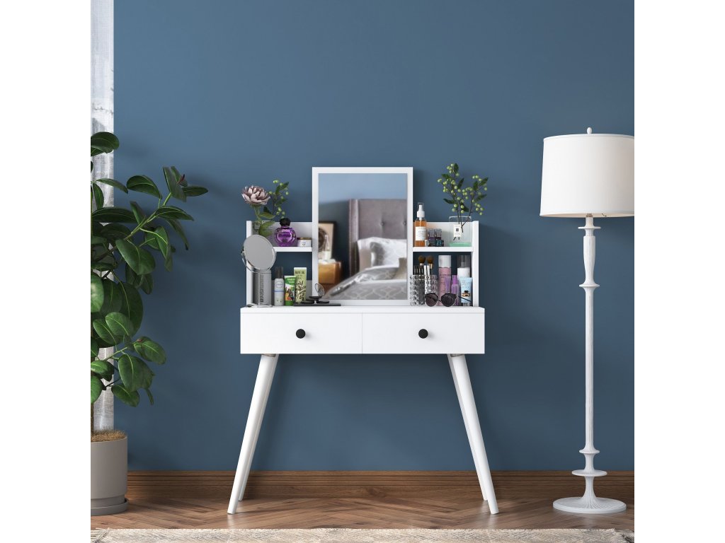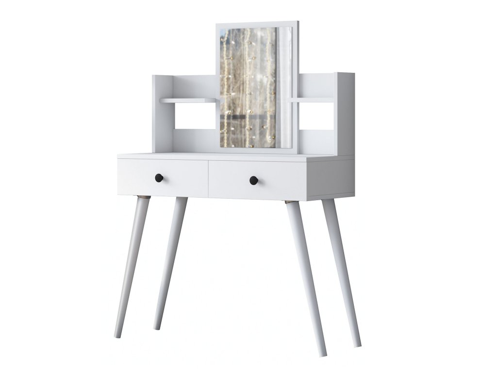 Toaletný stolík GLENN je ideálnym doplnkom pre modernú spálňu. Vďaka svojmu škandinávskemu dizajnu a čisto bielej farbe prináša do priestoru sviežosť a jednoduchosť. Praktické zásuvky a veľké zrkadlo zaisťujú komfort a funkčnosť pri každodennom používaní.