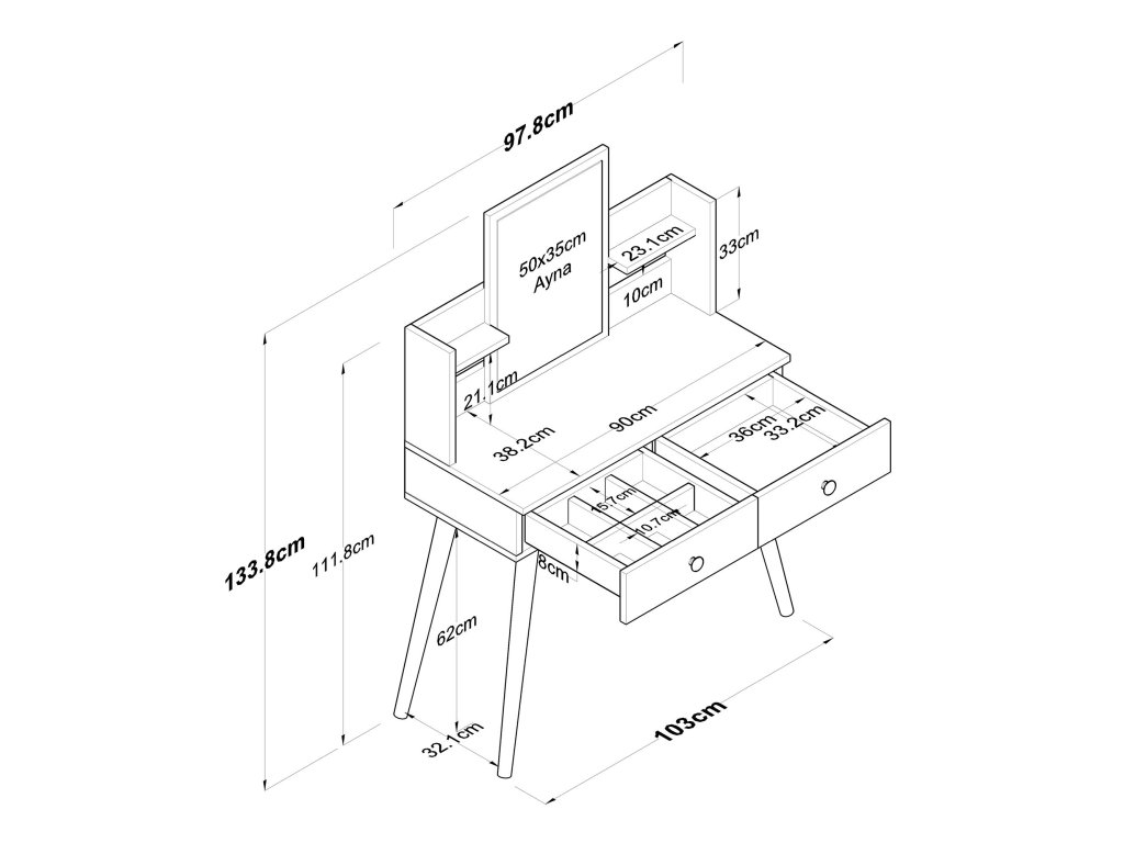 - 2 praktické zásuvky na kozmetiku, šperky alebo iné doplnky.