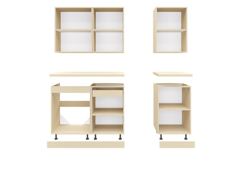| Zostava obsahuje: | 1 ks horná jednodverová skrinka 50 cm. 1 ks horná dvojdverová skrinka 50 cm 1 ks horná jednodverová skrinka 40 cm 1 ks dolná jednodverová drezová skrinka 50 cm 1 ks dolná dvojdverová skrinka so zásuvkou 50 cm 1 ks dolná jednodverová. |