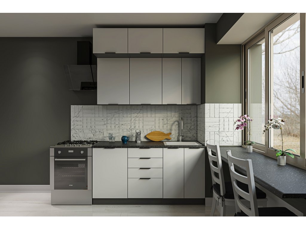 Drez a pracovnú dosku treba dokúpiť, spotrebiče nie sú súčasťou kuchynskej linky. Kuchyňu je možné zakúpiť iba ako zostavu.