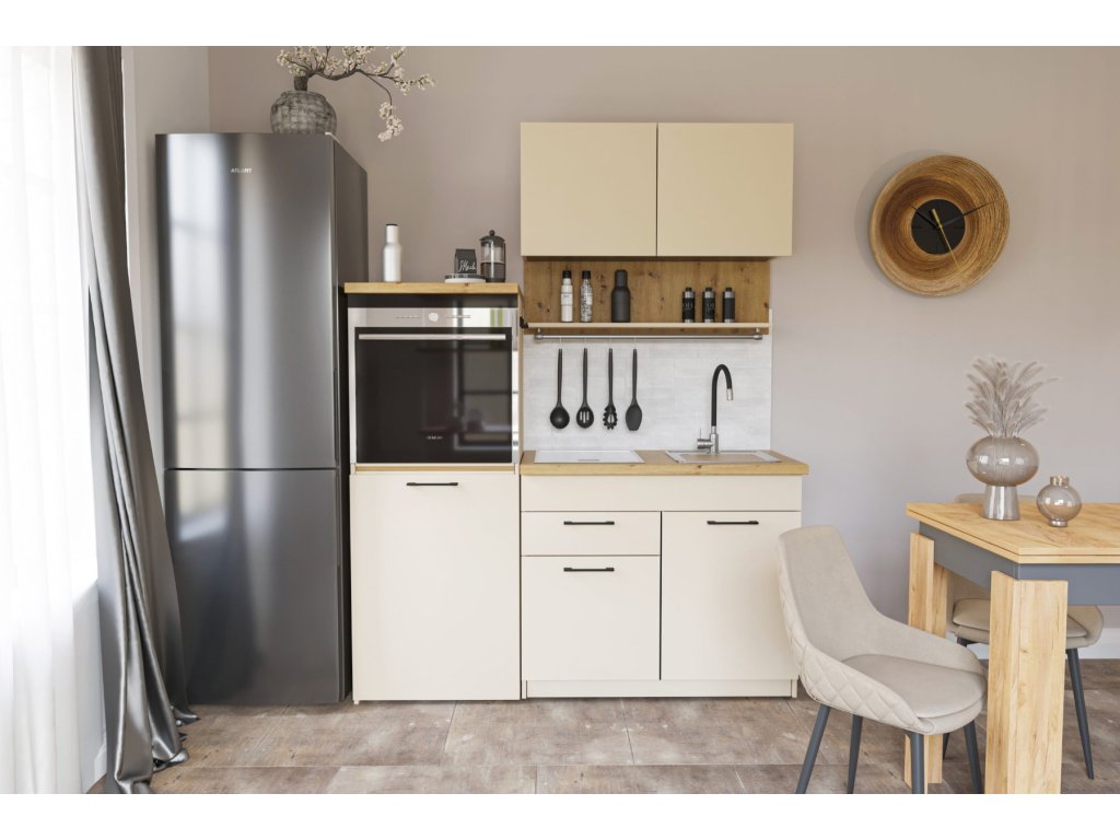 Kuchynská linka FEEL 160 kombinuje moderný dizajn s praktickým usporiadaním. Jej závesná skrinka s odkvapkávačom umožňuje efektívne sušenie riadu, zatiaľ čo skrinka s pracovnou doskou poskytuje priestor na prípravu jedla a uskladnenie vecí. Multifunkčná skrinka ponúka priestor na mikrovlnku alebo rúru, čo pridáva ďalšiu úroveň praktickosti a pohodlia. Pre väčšie pohodlie a štýl je súčasťou LED podsvietenia.
