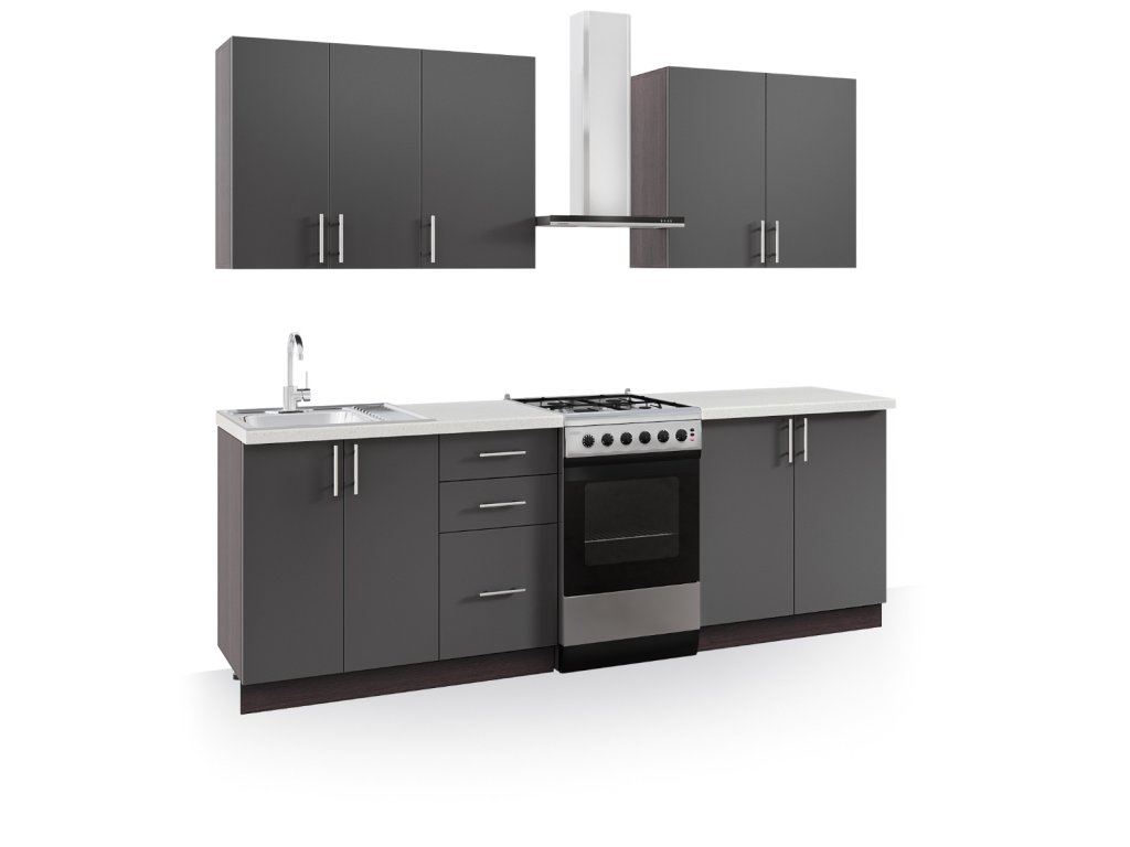 Kuchynská linka FIJONA 180 je priestranným a praktickým riešením pre kuchyne, kde je kladený dôraz na dostatok úložného priestoru a elegantný vzhľad. Premyslené rozloženie skriniek zabezpečuje pohodlné každodenné používanie a prehľadnú organizáciu kuchynských potrieb. Kombinácia farieb kremenec + wenge pôsobí harmonicky, moderne a nadčasovo.
