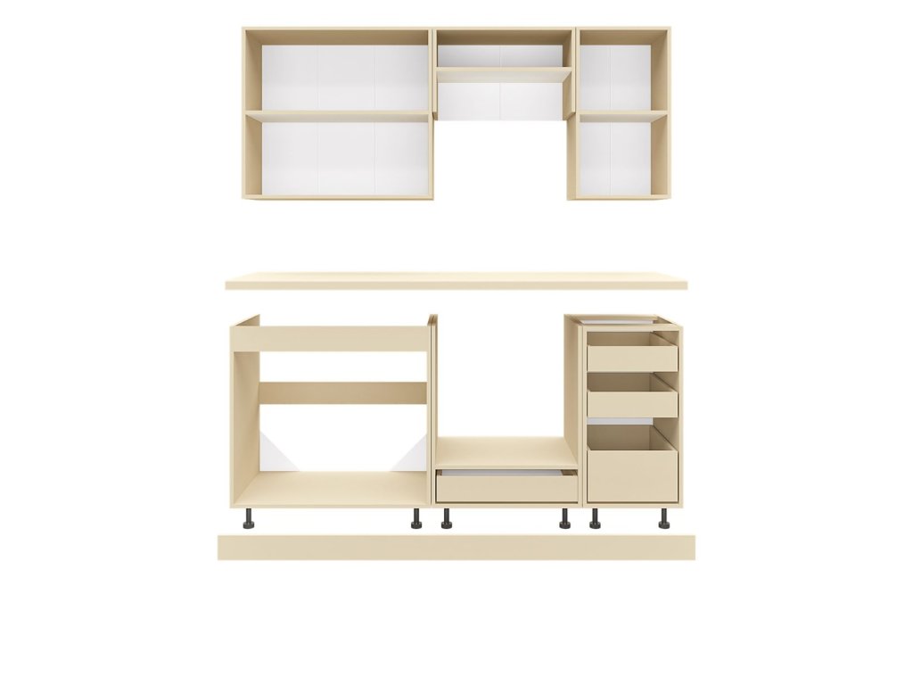 | Zostava obsahuje: | 1 ks horná dvojdverová skrinka 80 cm 1 ks horná digestorová skrinka 60 cm 1 ks horná jednodverová skrinka 40 cm 1 ks dolná dvojdverová drezová skrinka 80 cm 1 ks skrinka 1 skrinka so zásuvkami 40 cm |