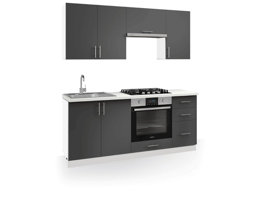 Moderná kuchyňa FORESTA 180 sa vďaka svojim rozmerom zmestí aj do menších priestorov. Farebné prevedenie antracit/biela jej dodáva moderný ráz, ktorý zvýrazňujú strieborné plastové úchyty. Je vyrobená z kvalitnej LTD dosky nenáročnej na udržiavanie, súčasťou kuchyne je sokel.