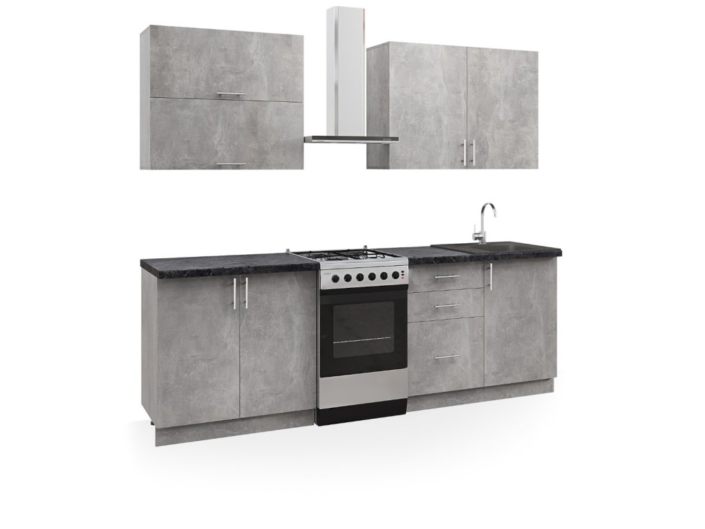 Kuchynská linka FORESTA 180 je moderným a funkčným riešením pre kuchyne, kde je kladený dôraz na čistý dizajn, praktické usporiadanie a dostatok úložného priestoru. Jednofarebné vyhotovenie v odtieni betón pôsobí minimalisticky a nadčasovo, vďaka čomu sa kuchyňa ľahko kombinuje s rôznymi štýlmi interiéru.