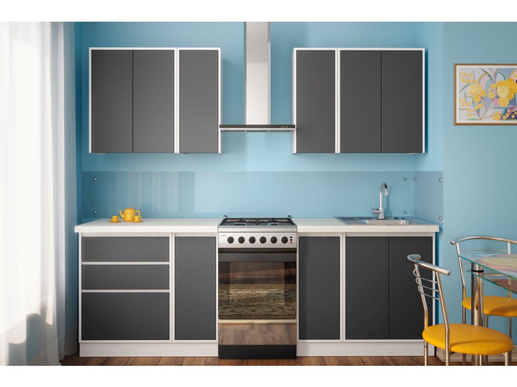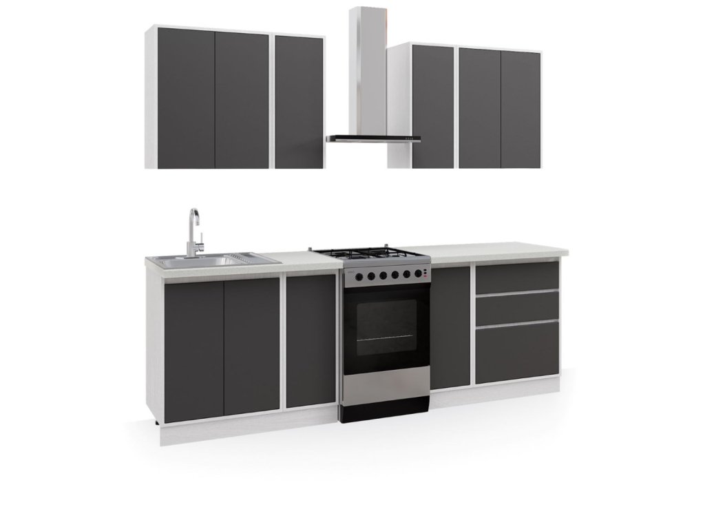 Kuchynská linka MATEO 180 je moderná a napriek tomu mimoriadne cenovo dostupná. Kombinácia farieb antracit a biela je veľmi žiadaná, jej moderný štýl podčiarkuje aj bezúchytový systém otvárania dvierok.