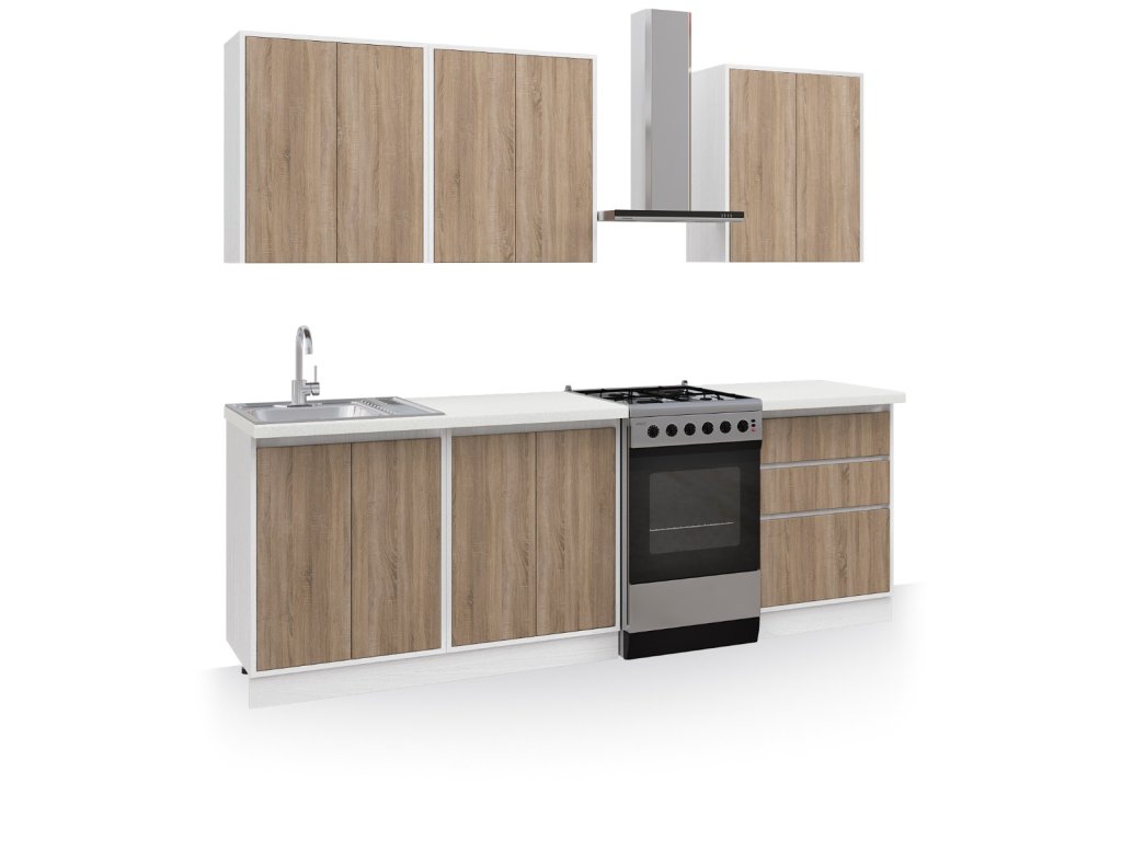 | Zostava obsahuje: | 3 ks horná dvojdverová skrinka 60 cm 1 ks dolná dvojdverová drezová skrinka 60 cm 1 ks dolná skrinka so zásuvkami 60 cm 1 ks dolná dvojdverová skrinka 60 cm |