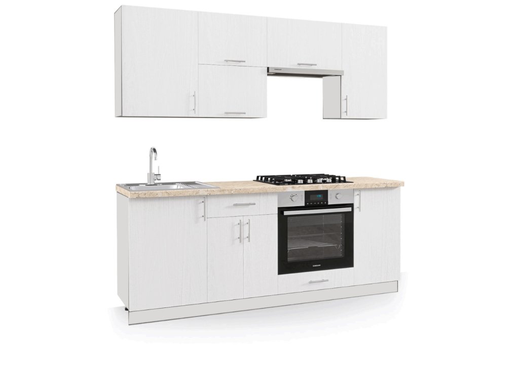 Kuchynská linka FORESTA 200 je veľmi jednoducho riešená a poteší mimoriadne priaznivou cenou. Farebné prevedenie biele drevo/biela je zvýraznené striebornými plastovými úchytmi. Je vyrobená z kvalitnej LTD dosky nenáročnej na údržbu a súčasťou kuchyne je sokel.