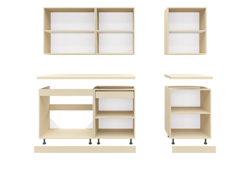 | Zostava obsahuje: | 1 ks horná dvojdverová skrinka 80 cm 2 ks horná dvojdverová skrinka 60 cm 1 ks dolná dvojdverová drezová skrinka 80 cm 1 ks dolná dvojdverová skrinka so zásuvkou 60 cm 1 ks dolná |