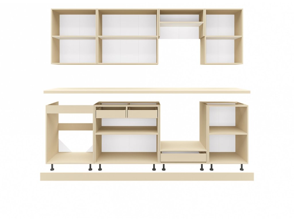 Pracovná doska nie je súčasťou kuchynskej zostavy, ale môžete si ju u nás dokúpiť. Spotrebiče nie sú v cene zostavy.
