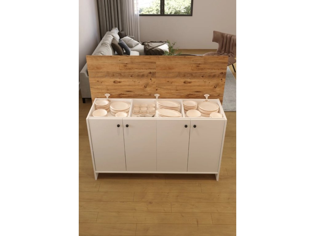 - Úložný priestor: za dvierkami 2 police + výklopná horná doska s priehradkami
