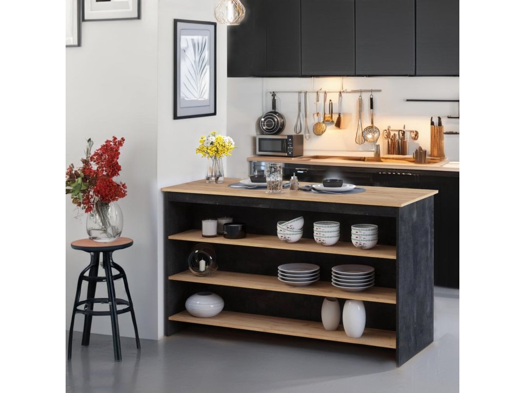 Kuchynský ostrovček TREVIS 04, čierny betón/dub craft