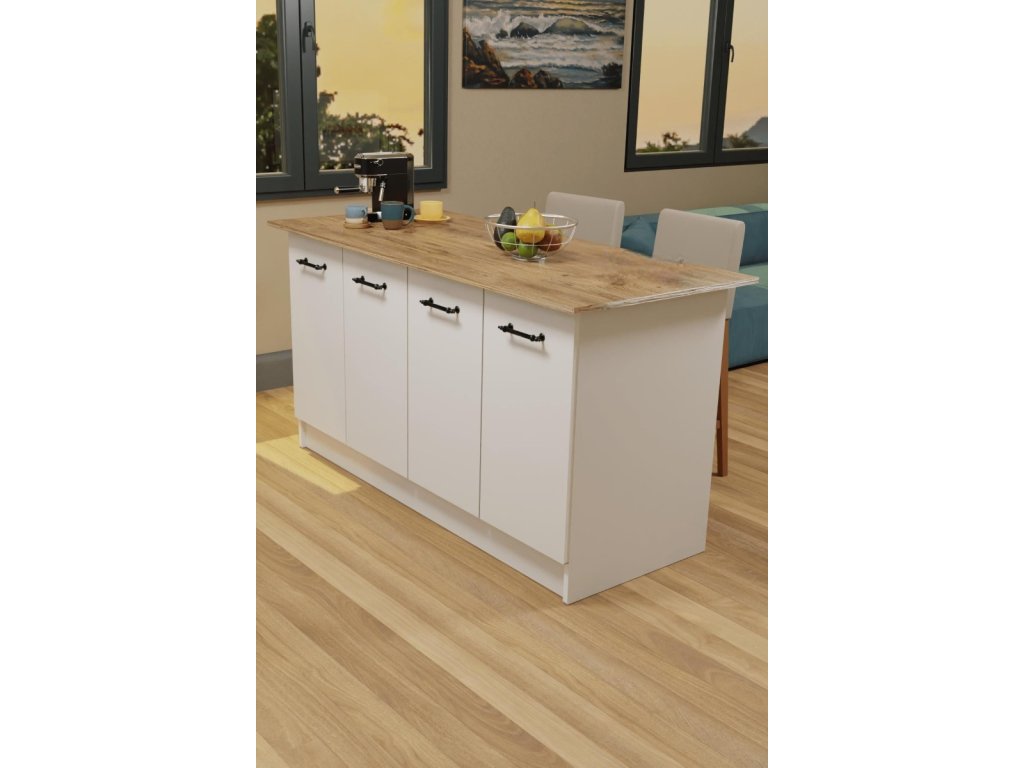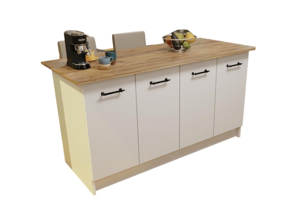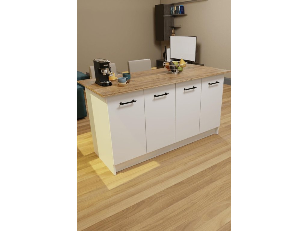 Predstavujeme vám kuchynský ostrovček VERRI v elegantnej kombinácii bielej a borovice, ktorý prinesie do vašej kuchyne moderný a praktický prvok.