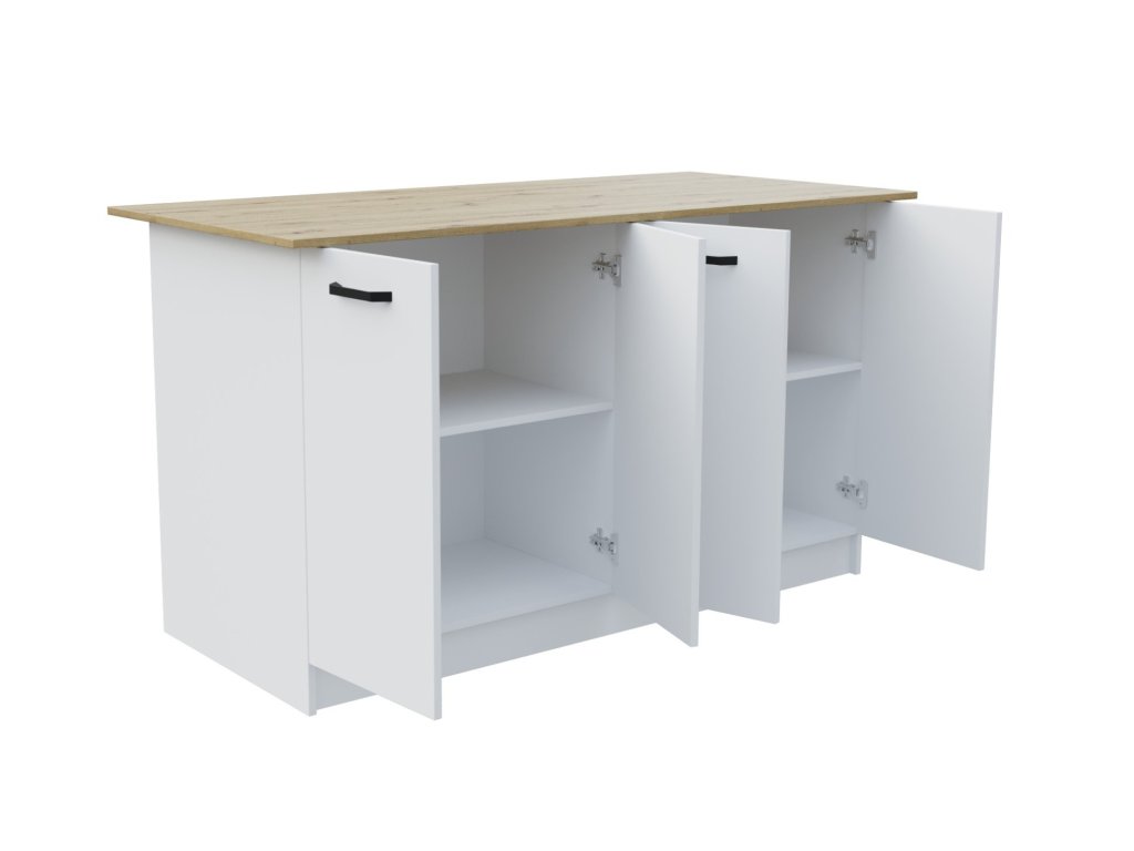 Kuchynský ostrovček VERRI II disponuje 4 dvierkami, za ktorými sa nachádzajú police, ktoré doplnia Váš úložný priestor a sú ideálne na uskladnenie vašich kuchynských potrieb. Kuchynský ostrovček je vyrobený z kvalitnej LTD dosky, čo zaisťuje produktu dlhú životnosť a odolnosť.