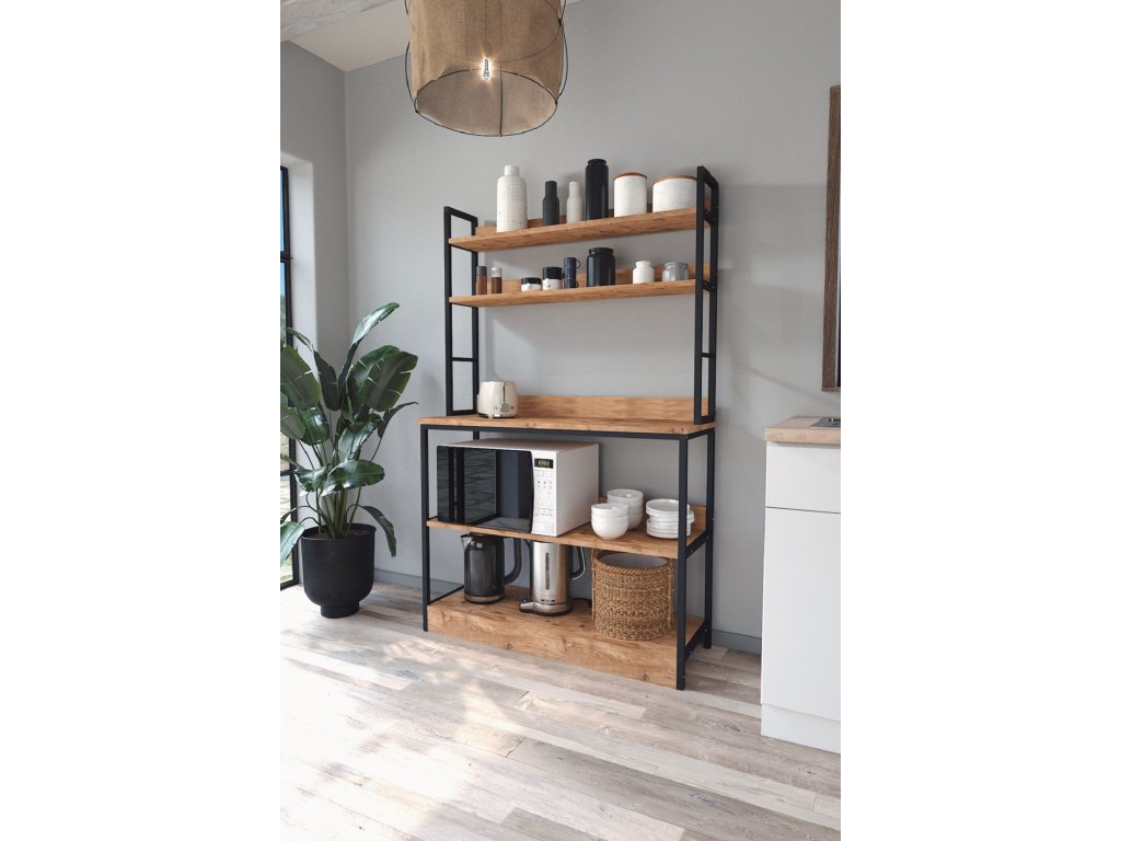 Kuchynský stojan 5-policový WILMAR, borovica/čierna