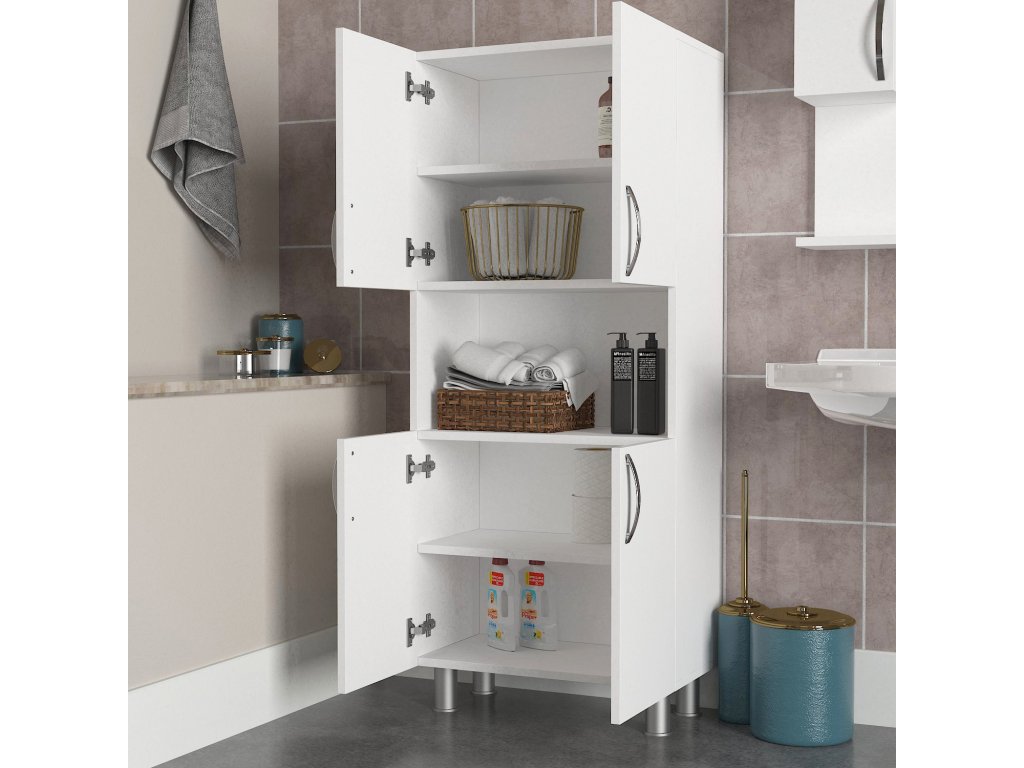 Vďaka svojej veľkorysej veľkosti a početným poličkám ponúka naša kúpeľňová skrinka dostatok úložného priestoru pre všetky vaše kúpeľňové nevyhnutnosti. Od uterákov a toaletných potrieb až po kozmetické produkty a čistiace prostriedky, všetko bude mať svoje určené miesto, takže vaša kúpeľňa bude vždy uprataná a organizovaná.