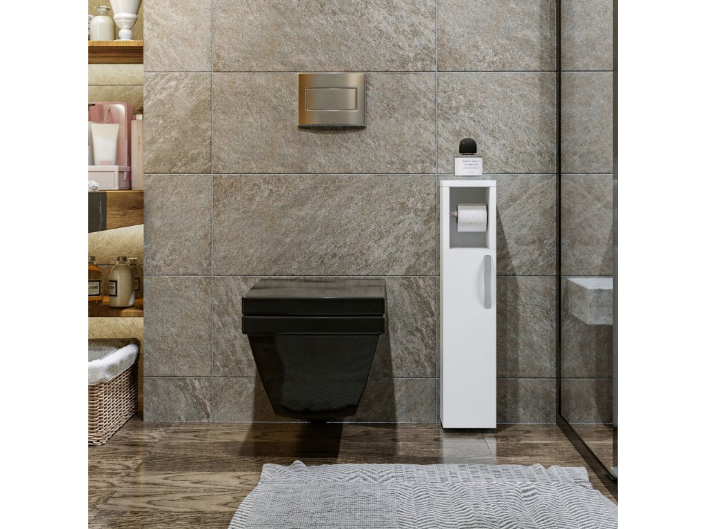 Čisté línie a minimalistický dizajn našej kúpeľňovej skrinky okamžite pozdvihnú estetiku vašej kúpeľne. Elegantná biela farba dodáva kúpeľni nádych sofistikovanosti a vytvára ukľudňujúcu atmosféru, vďaka ktorej sa budete vždy, keď vstúpite do kúpeľne, cítiť ako v luxusných kúpeľoch.