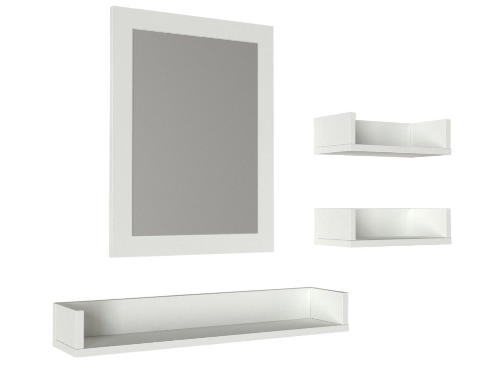 Set zrkadla a troch závesných políc SIMEON bude praktickým pomocníkom do každej kúpeľne. Produkty sú vyrobené z kvalitného 18 mm LTD materiálu, ktoré sú nenáročné na údržbu č ocení každý majiteľ.