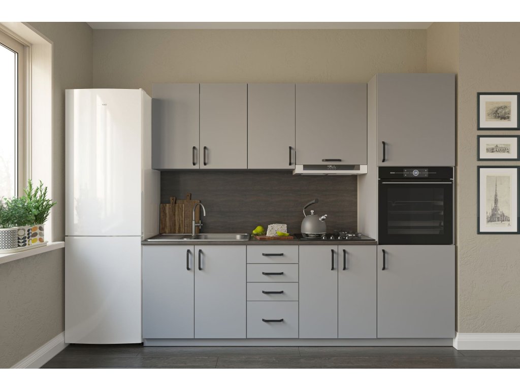 LOTUS jednoduchá kuchynská linka 240 cm, bledosivá