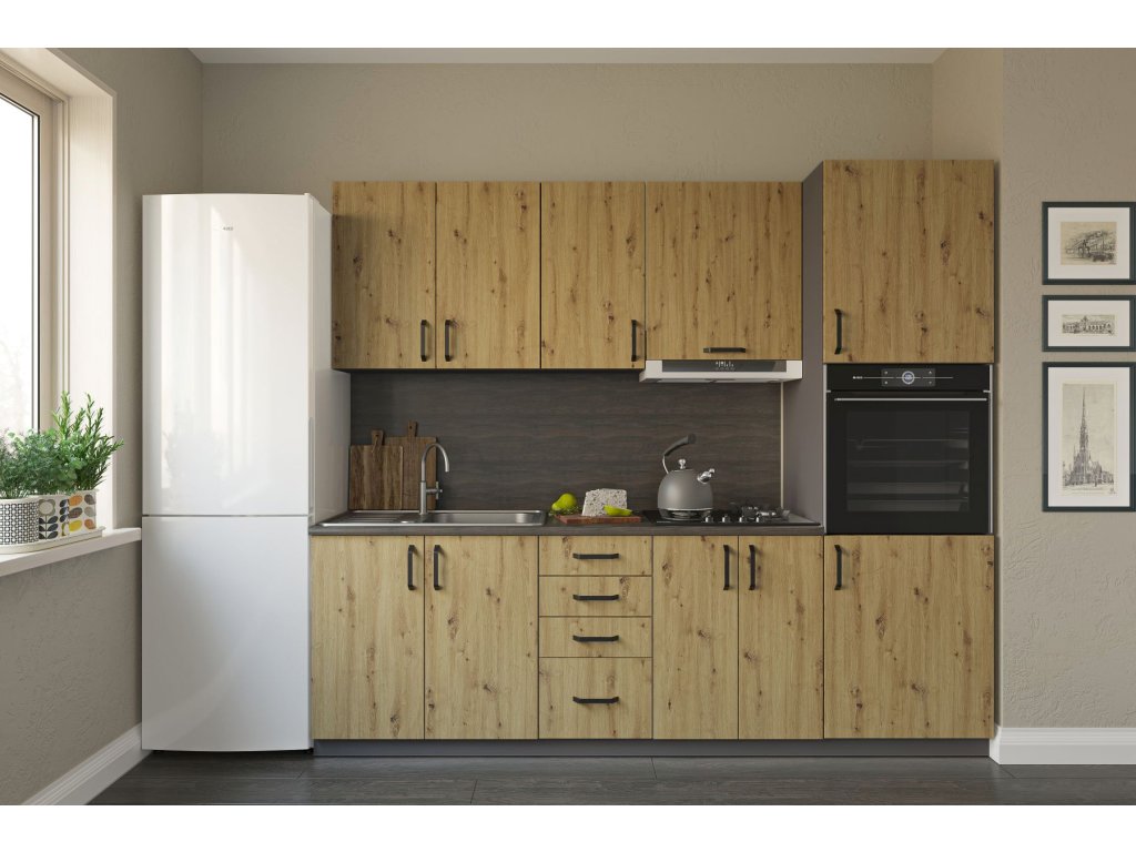 LOTUS jednoduchá kuchynská linka 240 cm, sivá-dub artisan